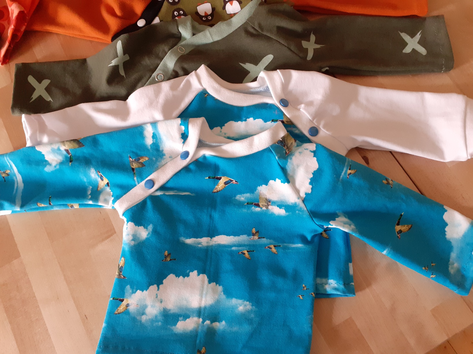 Mit den Shirts werden ein Stapel Hosen bzw. Strampler vervollständigt.