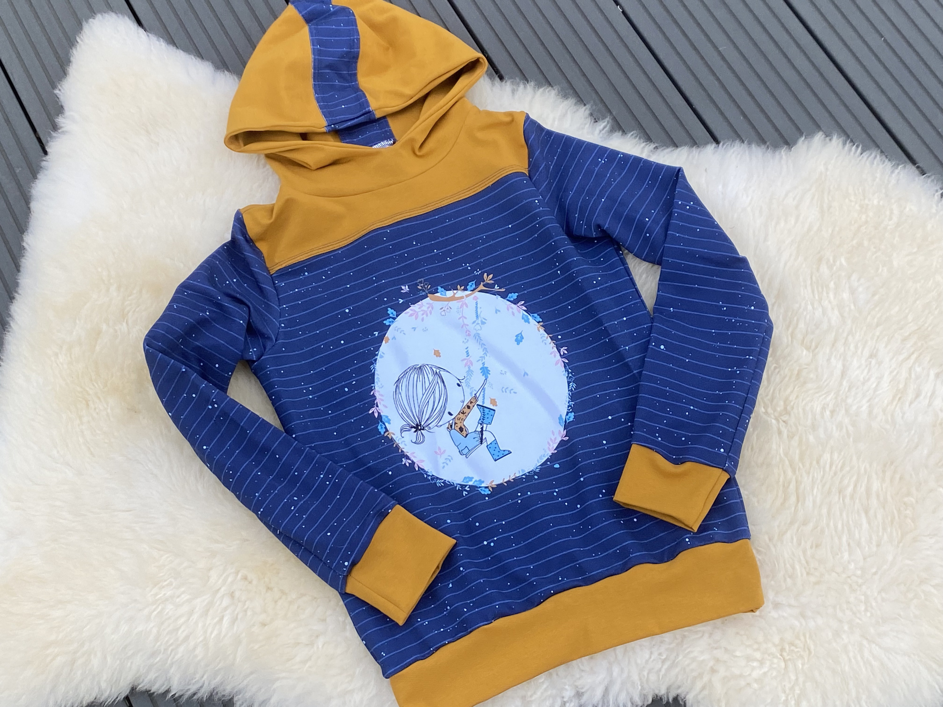 Dieses hier ist wieder ein Paco mit Kapuze von "meine Herzenswelt" in Gr 134 - ich lieb den Schnitt und er steht der Murmel auch sehr gut. Ist sehr schlank, also nichts für kleine Bäuchlein-Figuren, aber bei uns passt das mit unserer kleinen Bohnenstange ![]()