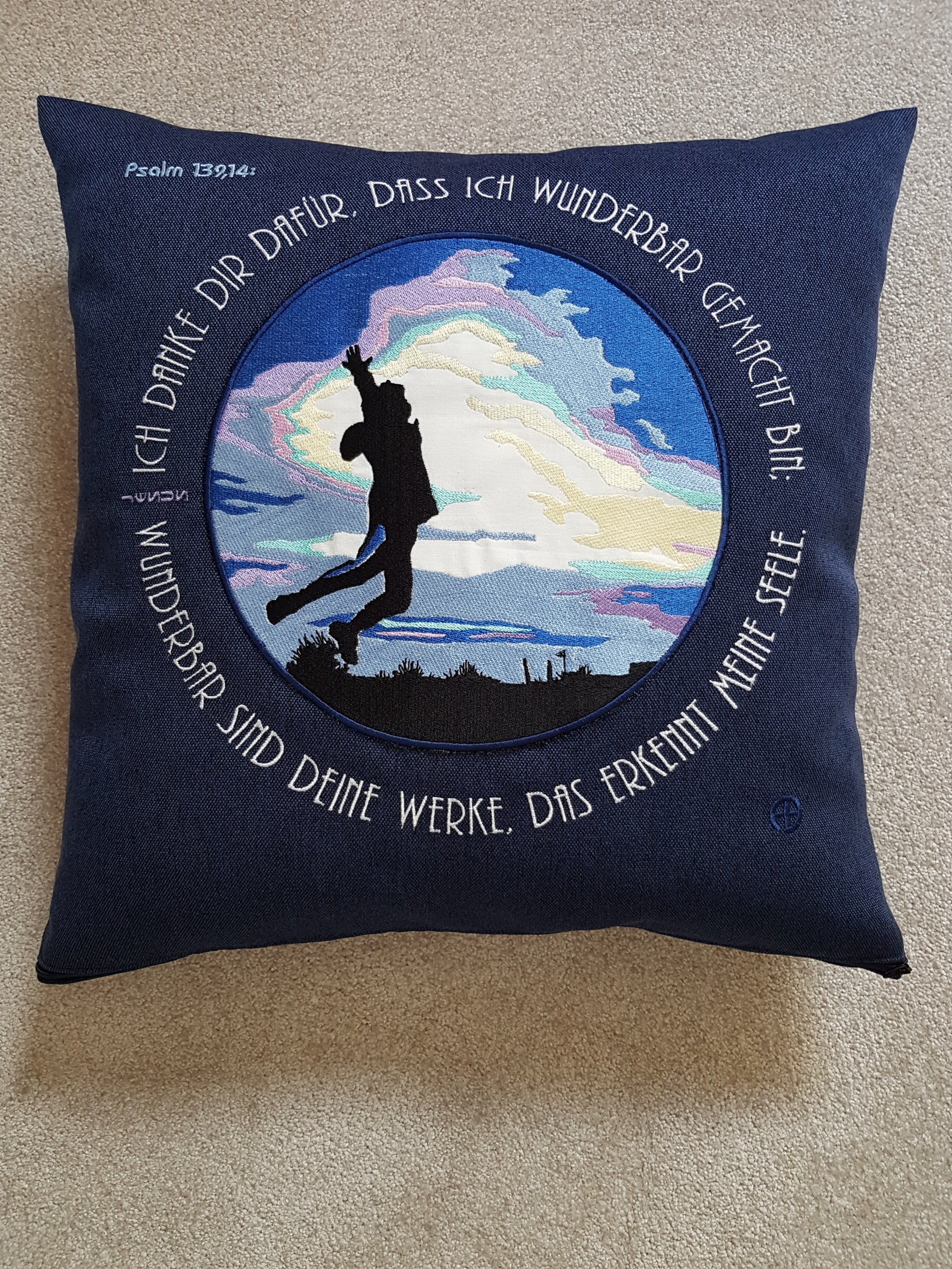 Mir der freundlichen Unterstützung seiner Mutter, die mir Fotos und Infos zur Verfügung stellte, konnte ich für einen Jungen ein ganz persönliches Geschenk zur Konfirmation entwickeln, mit der Sticksoftware umsetzen und mit der Maschine sticken und nähen.