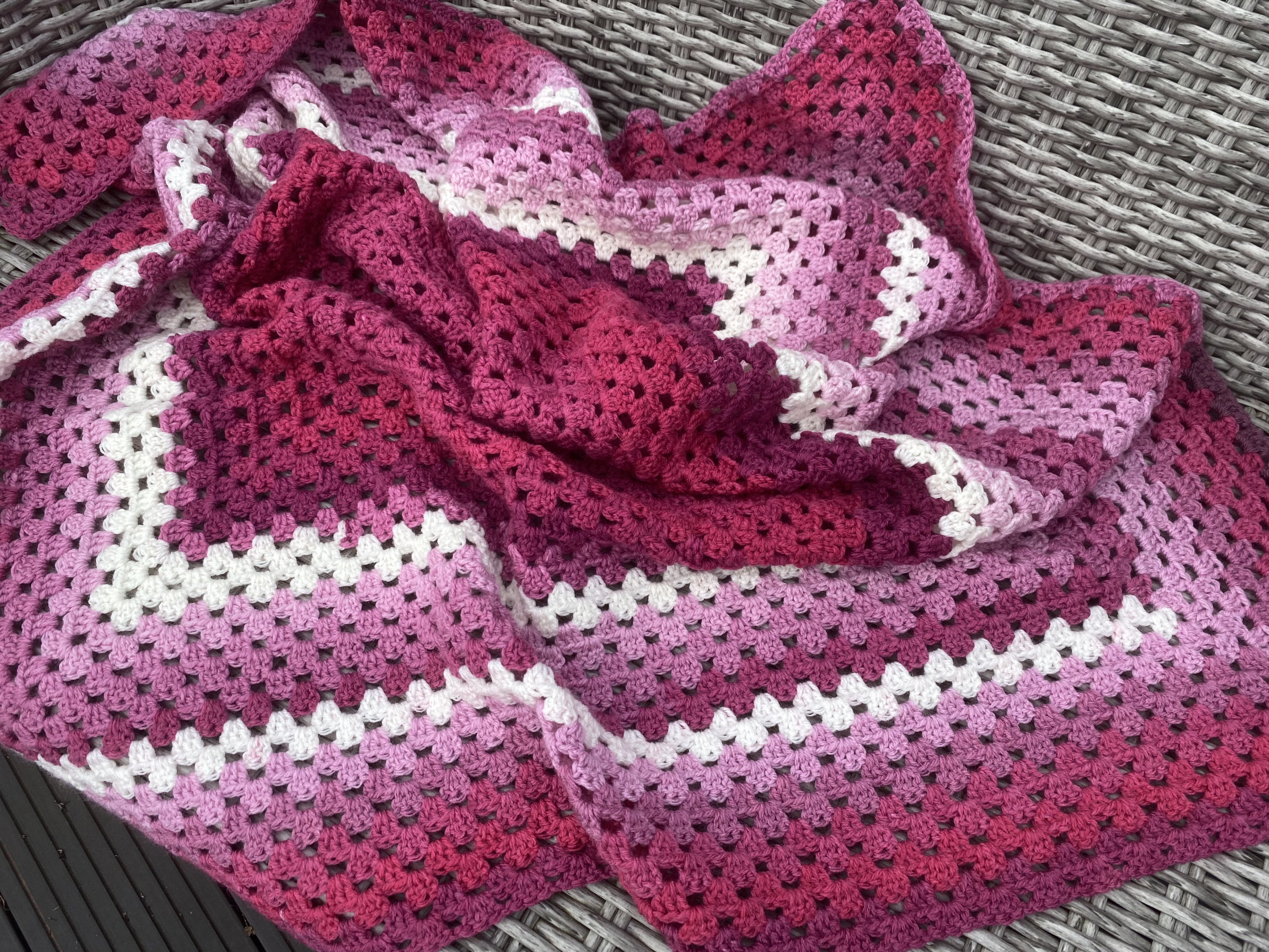 Die "big granny squares" haben es mir angetan. Nachdem ich jahrelang einfach nicht kapiert hatte, wie die gemacht werden, kam mir letztes Jahr ein Video auf youtube unter - und der Knoten war geplatzt. Seitdem liebe ich dieses Muster und habe schon einige Decken danach gehäkelt.