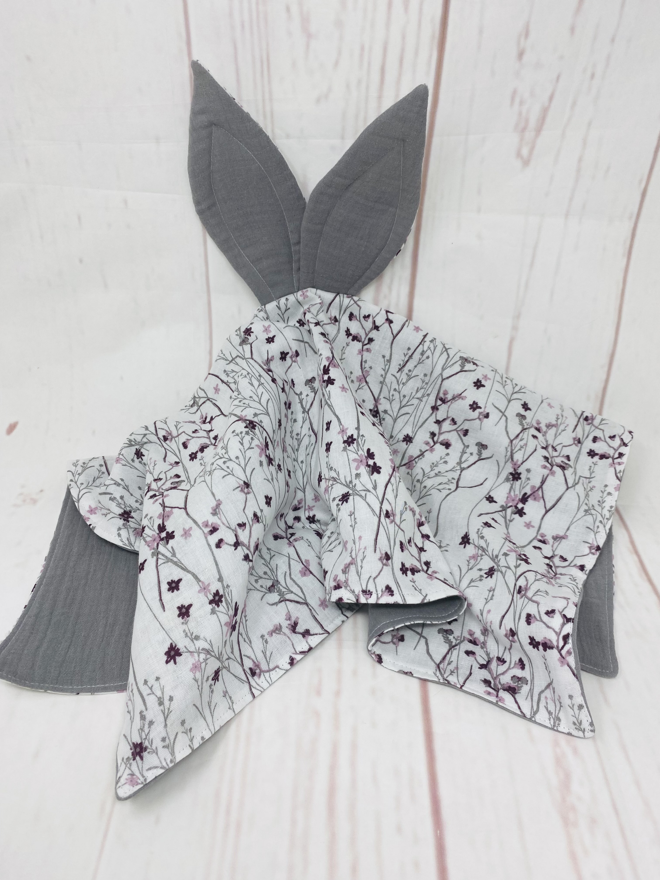 Hier mal wieder ein Schnuffeltuch mit Hasenohren - das ist ein Freebie von rosarosa und einfach zu nähen, macht aber richtig was her.