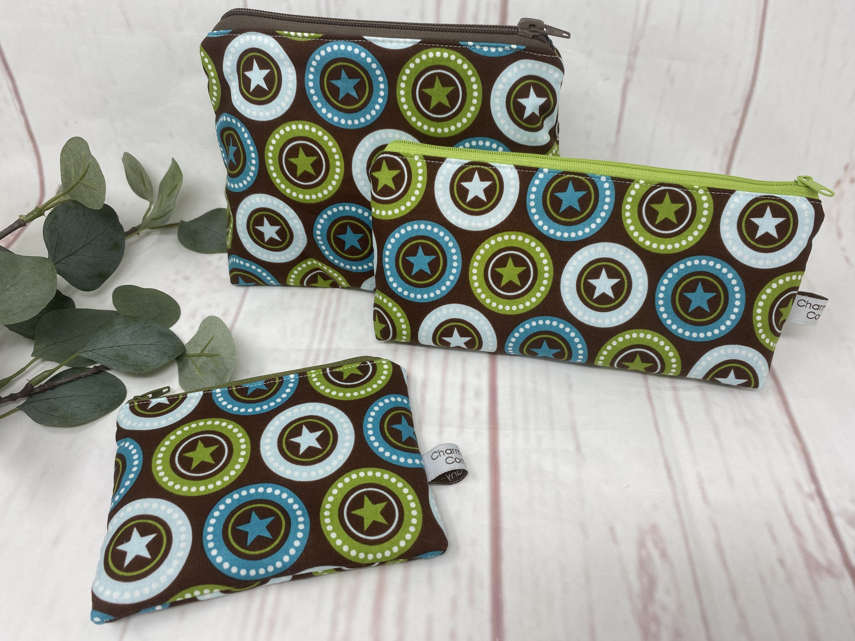 Hier mal 3 Größen an Kosmetiktaschen - die längliche ist schon verkauft. Ich habe verschiedene Farben an Zippern genommen - je nachdem, was da war und was gut gepasst hat. Gefallen mir alle 3. Innen mit grasgrüner Baumwolle gefüttert.