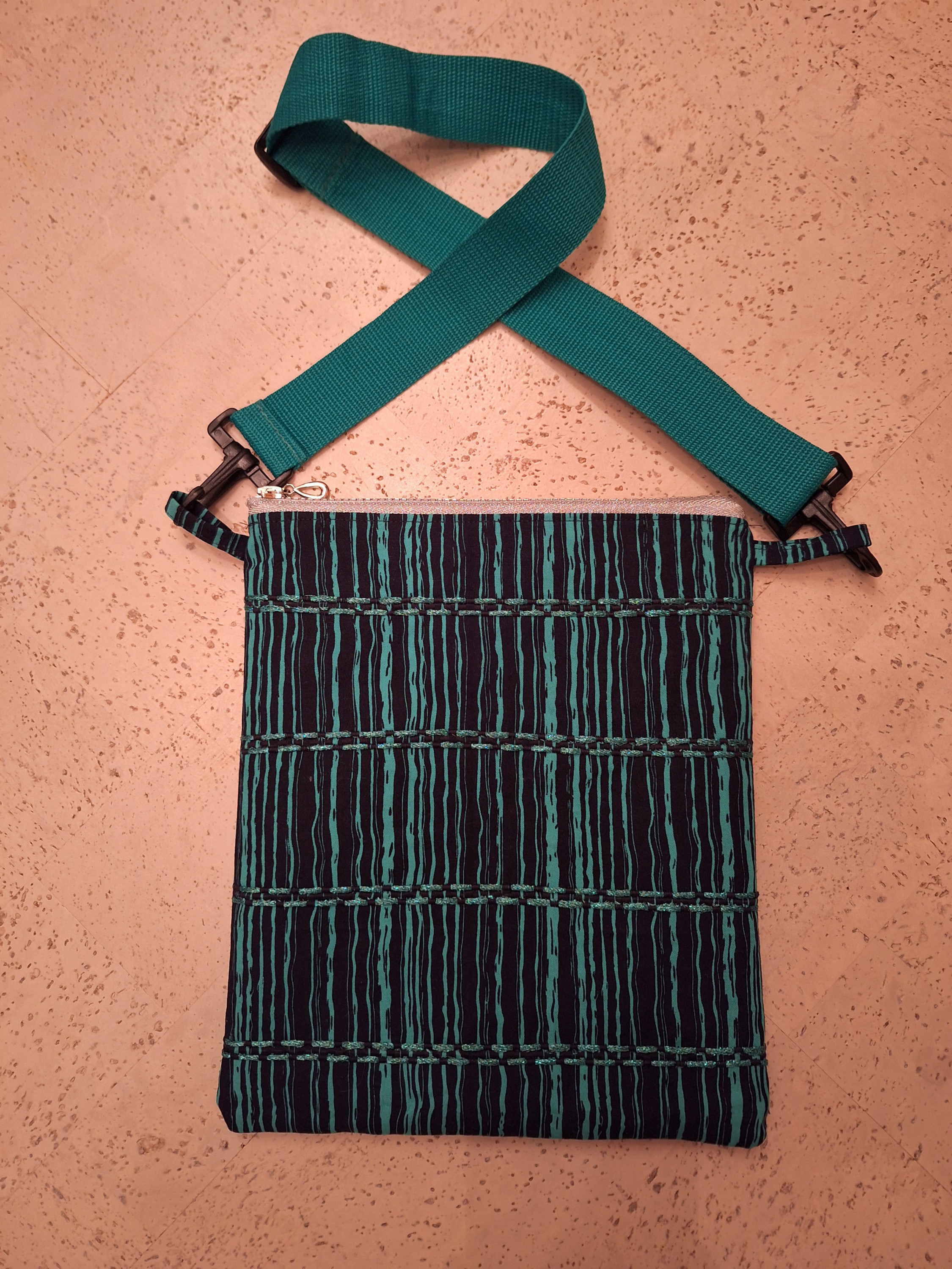 Die Umhängetasche habe ich in Anlehnung an eine Anleitung aus einer alten Patchworkzeitschrift "Lena's Patchwork Wundervolle Patchworktaschen" genäht.