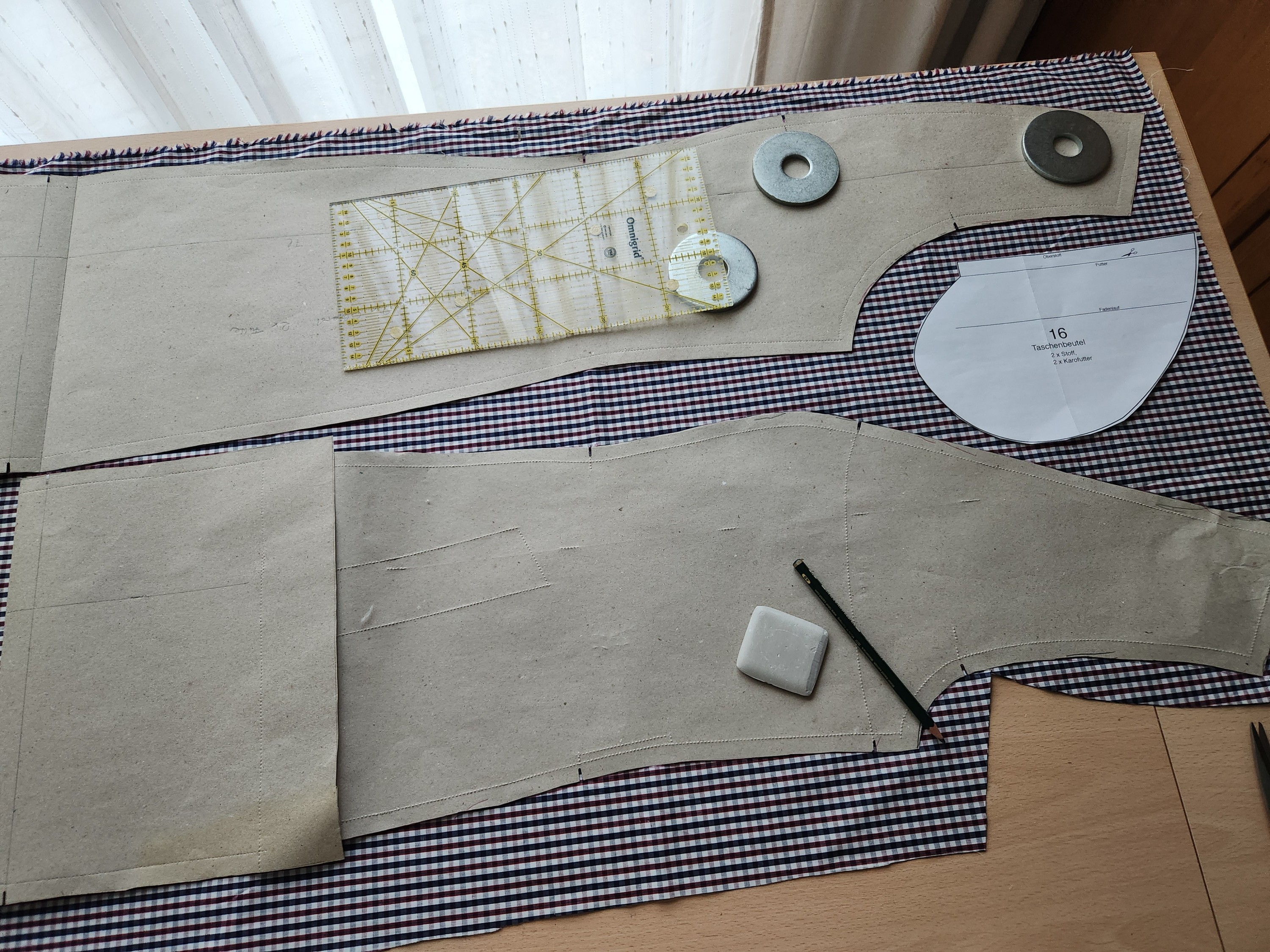 ... nach fast 4 Jahren wird es Zeit, mal in die Puschen zu kommen. Für das geplante Probemodell (20 cm kürzer als der Originalschnitt) hab ich das Futter schon mal zugeschnitten.