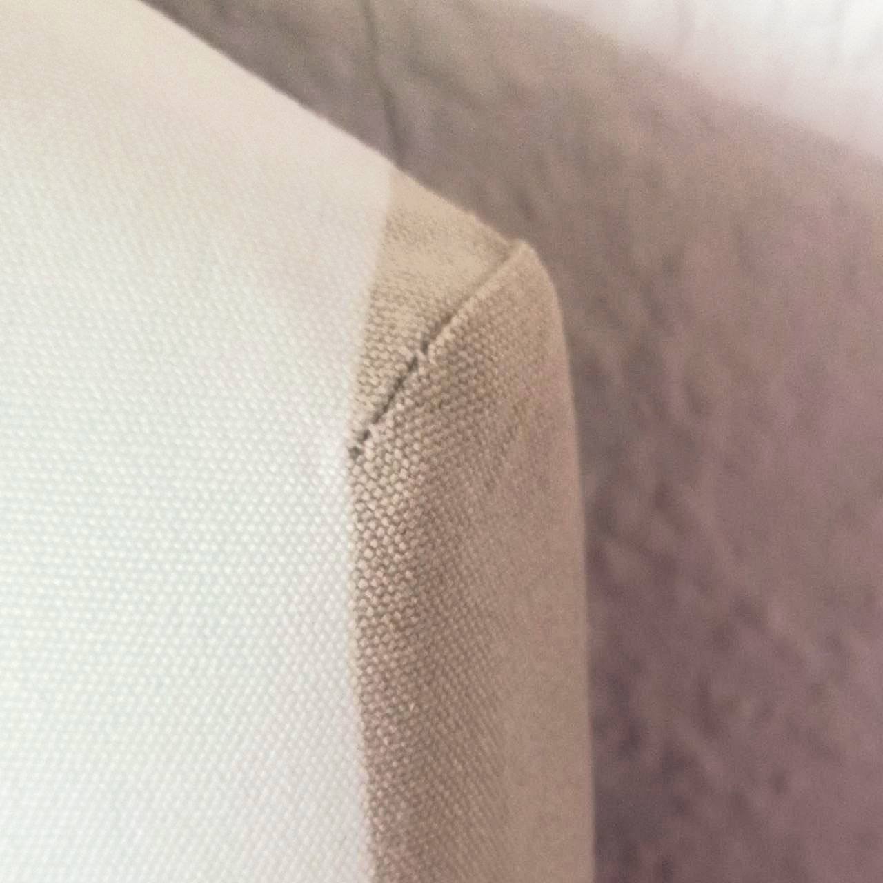 Erstmal ausgemessen und einen Probebezug aus einem alten Laken genäht, nach Änderungen Schnitt gezeichnet, genäht und da der Bezugsstoff sich anders verhält, die Abnäher nochmal neu konstruiert. Passt sehr gut. Nur noch die anderen nähen und unten tackern.