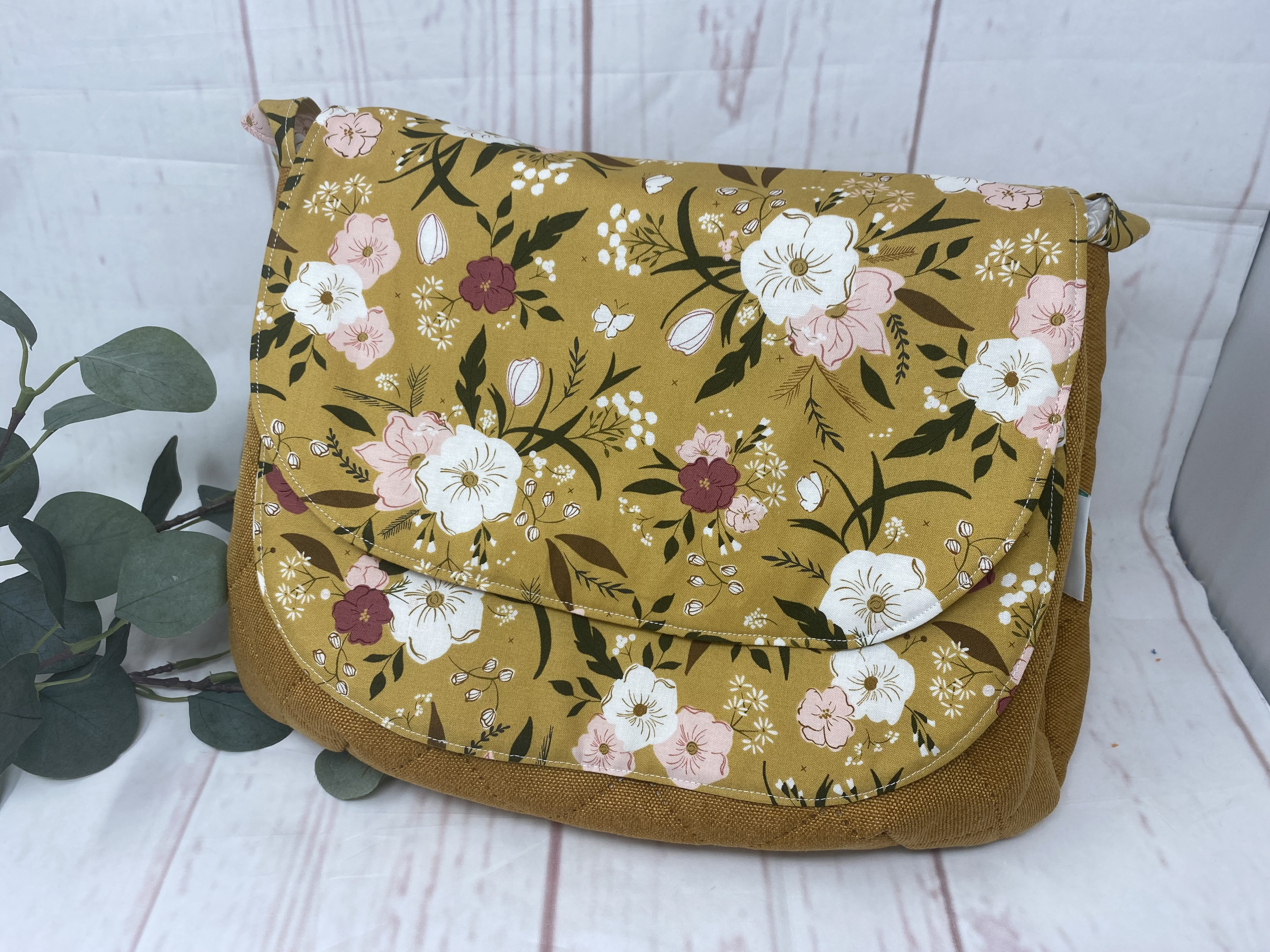 Verwendet habe ich schon fertig wattierten und gequilteten Taschenstoff von Swafing in curry. Leider jetzt leer. Der Kombistoff ist von Moda und ein Patchworkstoff. Davon hab ich noch - das gibt noch eine ganze Menge toller Taschen.