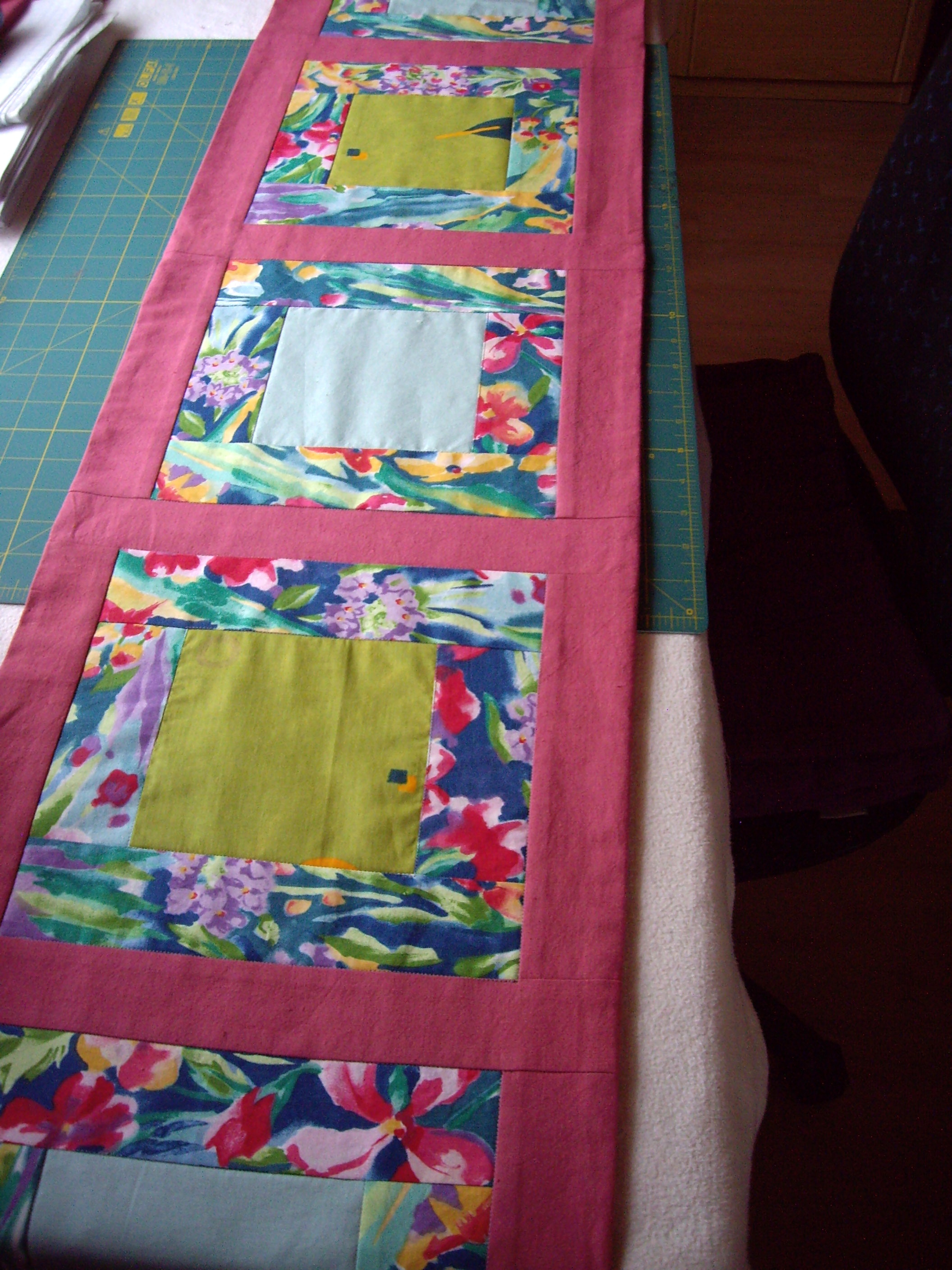 Ich bewundere und bestaune immer wieder eure tollen Patchworkarbeiten. Nun habe ich mich auch mal an ein Versuchsstück gewagt. Trotz gewissenhaftem messen und bügeln, bügeln, bügeln ist das Werk nicht ganz gerade genäht.