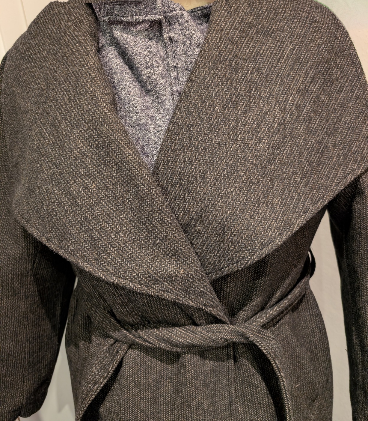 Einmal eine etwas nähere Ansicht des großen Kragens. Abgesteppt habe ich ihn mit einem etwas stärkeren Seidengarn.