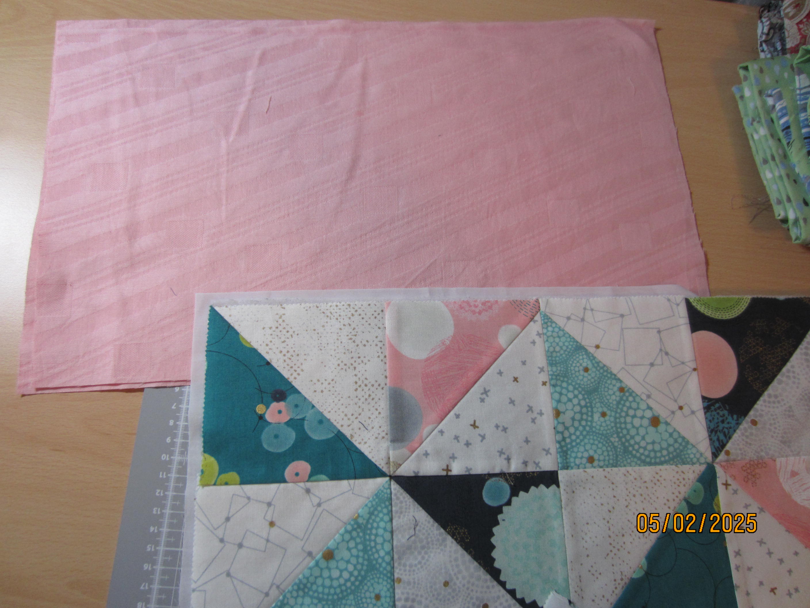 FĂŒr die RĂŒckseite hab ich ein StĂŒck rosĂ©farbenen Damast ausgesucht (in diesem Falle nicht selbst gefĂ€rbt, sondern aus dem VEB Planet-BettwĂ€sche Eppendorf, wo mein Schwager frĂŒher gearbeitet hat)