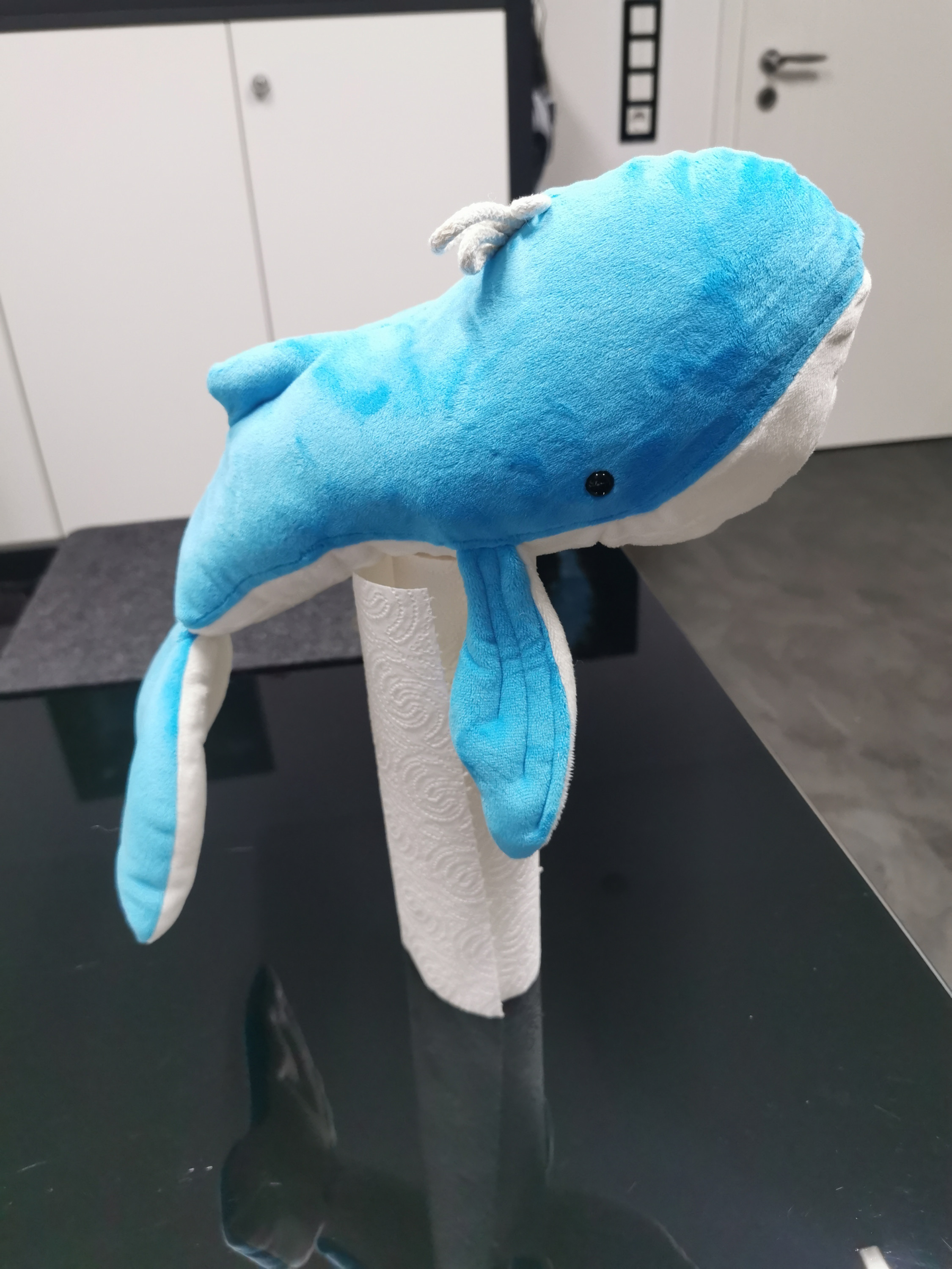 Für meinen Neffen habe ich auf vielfachen Wunsch ebenfalls einen Kuschelwal genäht. Mittlerweile brauche ich nicht mal mehr die Anleitung
