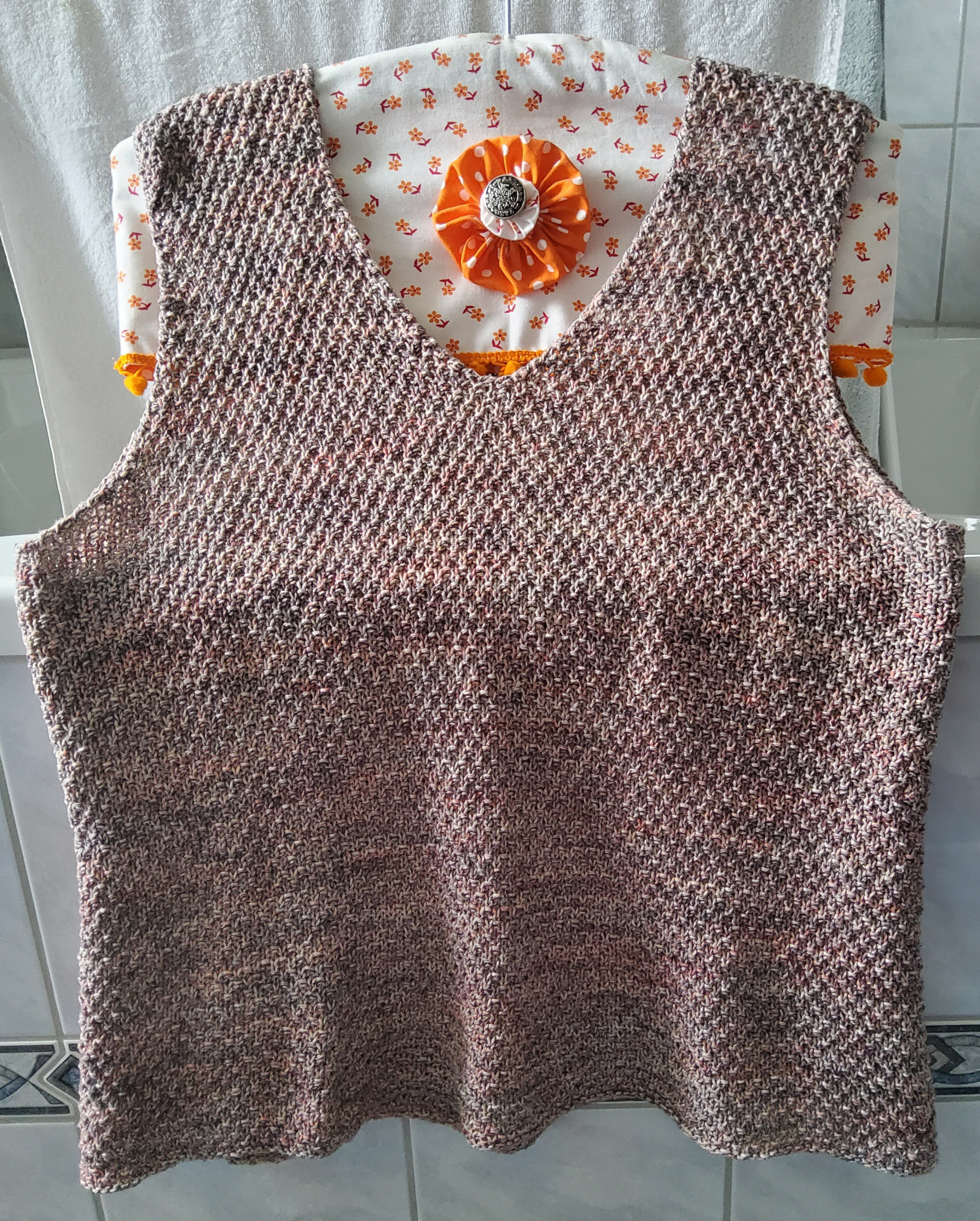 Das habe ich euch noch gar nicht gezeigt, ein sehr angenehm zu tragendes Sommertop aus Landlust Sommerseide im großen Perlmuster, schon vor einiger Zeit fertig geworden.