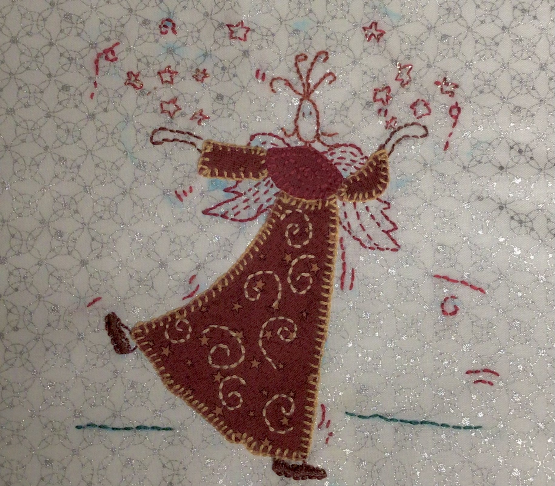 Nächstes Stickbild zum Quilt. Die blauen Stellen müssen noch rausgewaschen werden, ich habe nur getupft um die markierten Aussenränder nicht zu verlieren.