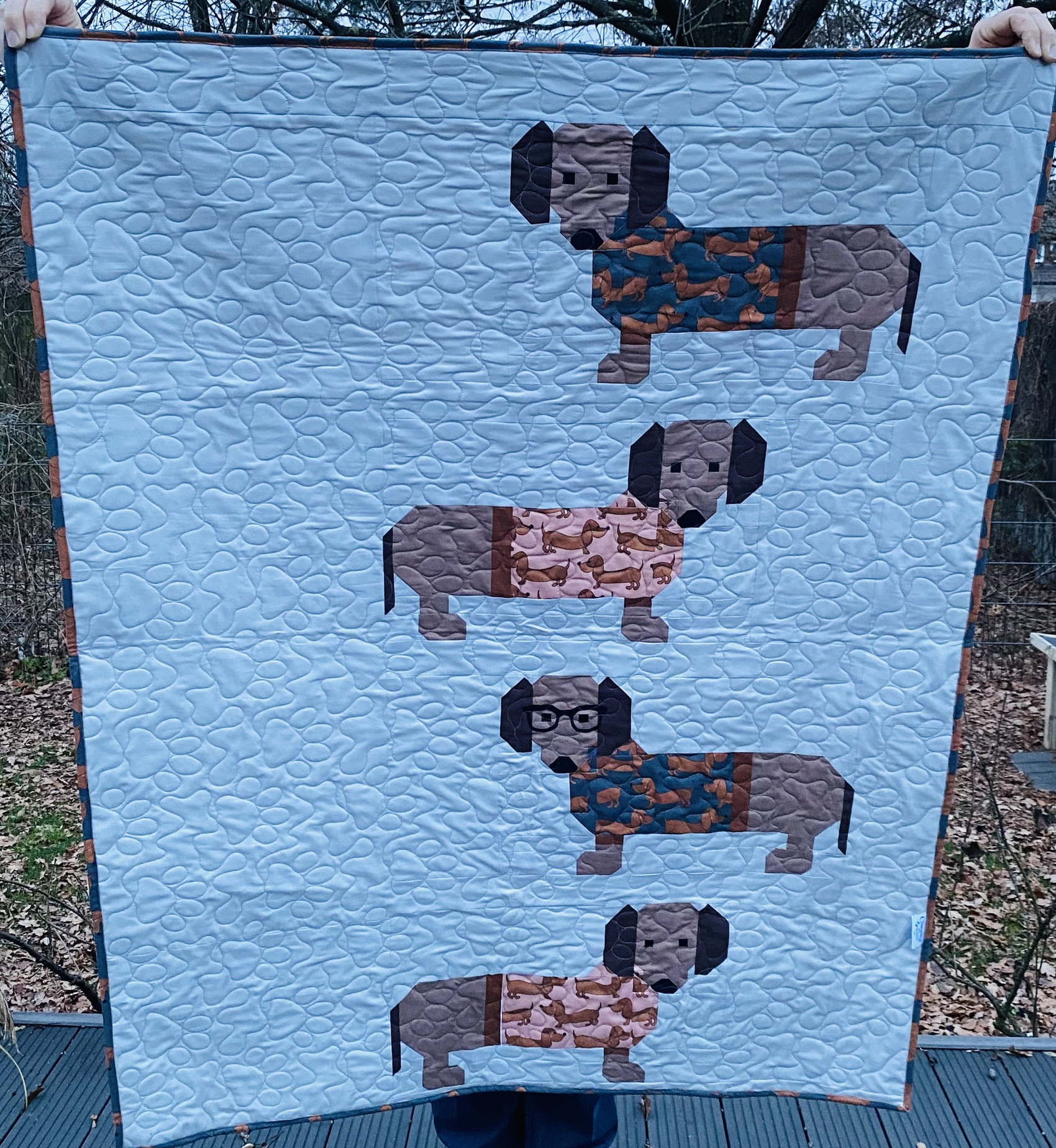 eine Bekannte meiner Mama hat mir ihre geliebten Dackelstoffe gebracht - war so ca im November. Und fragte, ob ich daraus was für sie zaubern kann - sie kann selbst nicht mehr nähen gerade, leidet sehr unter einer Erkrankung und die einzige Freude sind ihre beiden Dackel.
