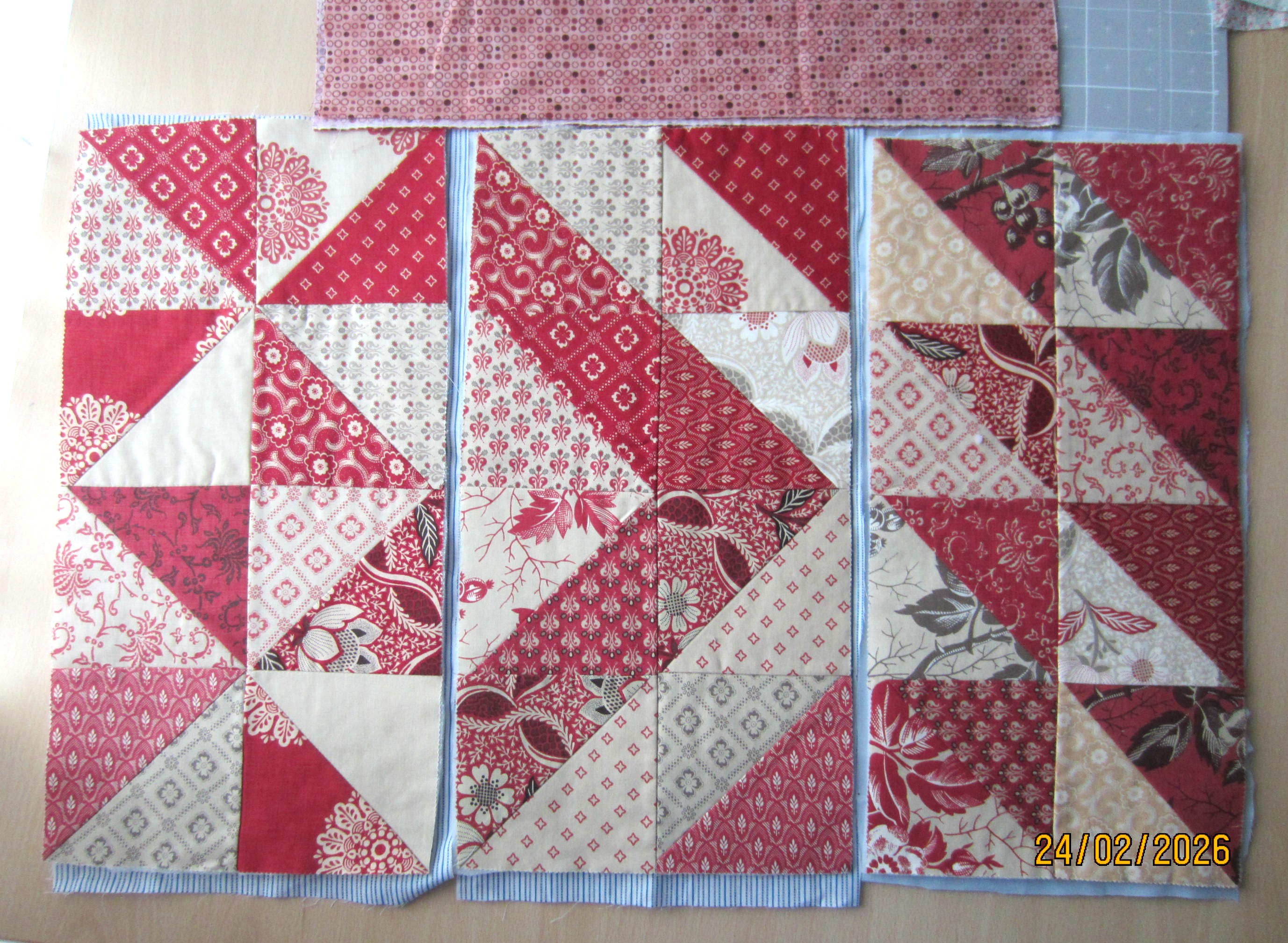 Der Stoff war der Rest eines Charm Packs, für einen schmalen Taler bei "Kleinanzeigen" erbeutet.