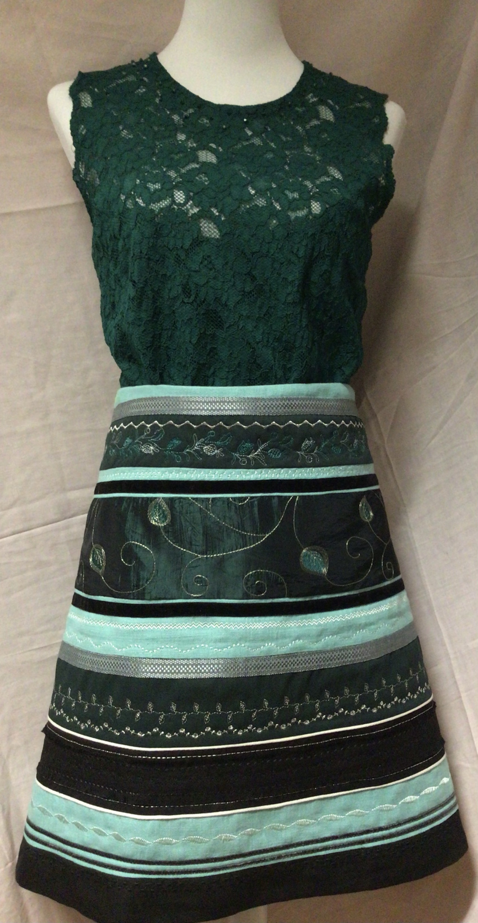 Aus meinen Resten der beiden Jacken entstand dieser Rock, inspiriert von den Bänderröcken von Lena Hoschek. Das Schnittmuster habe ich in Kniehöhe um 3 cm zum A-Linien Rock gespreizt.