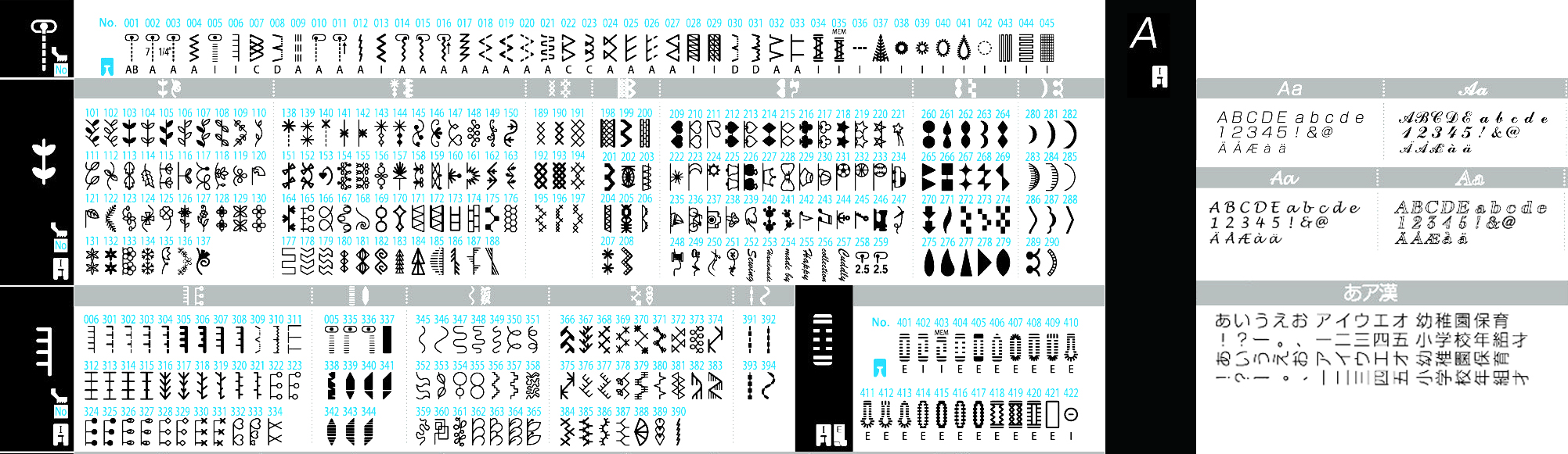 Nur ein Tastendruck und schon ist das gewünschte Stichmuster ausgewählt. Eine Gruppe der 10 häufigsten Nahtmuster werden mittels Vollbildmodus angezeigt. Selbstverständlich stehen auch eine Vielzahl von Applikationsstichen zur Verfügung. Insgesamt bietet die Kirei NX 7 351 Stichmuster und näht Buchstaben aus 4 Alphabeten. Ganz einfach ist auch das Kombinieren von dekorativen Stichmustern mit Buchstaben möglich oder Stichmuster können verlängert werden, ohne die Stichdichte zu ändern. Ebenso bietet die Kirei NX 7 die Möglichkeit, Stichkombinationen und Sticheinstellungen abzuspeichern und mit einem Tastendruck schnell abzurufen.