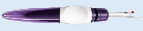 Der Nahttrenner besitzt ein geschlitztes Messerteil (rechts), das in der Mitte die scharfe Schneide hat. Die Seite mit der Kugel ist kürzer und wird oberhalb des Stoffes geführt. Die längere, spitze Seite nutzt man zum Einstechen oder herausziehen aufgeschnittener, kleiner Fäden.