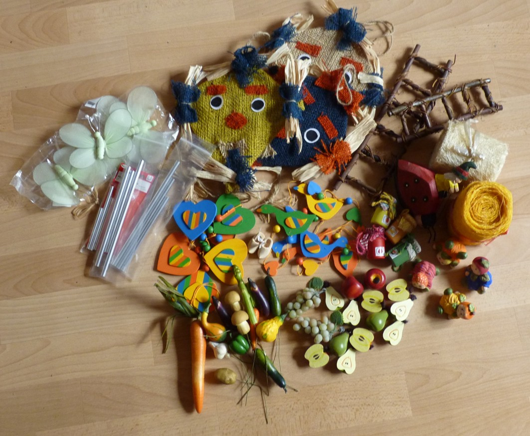 Es sind insgesamt 55 Teile - groß und klein - Holz, Keramik, Sisal und so eine Art Pappmachee .