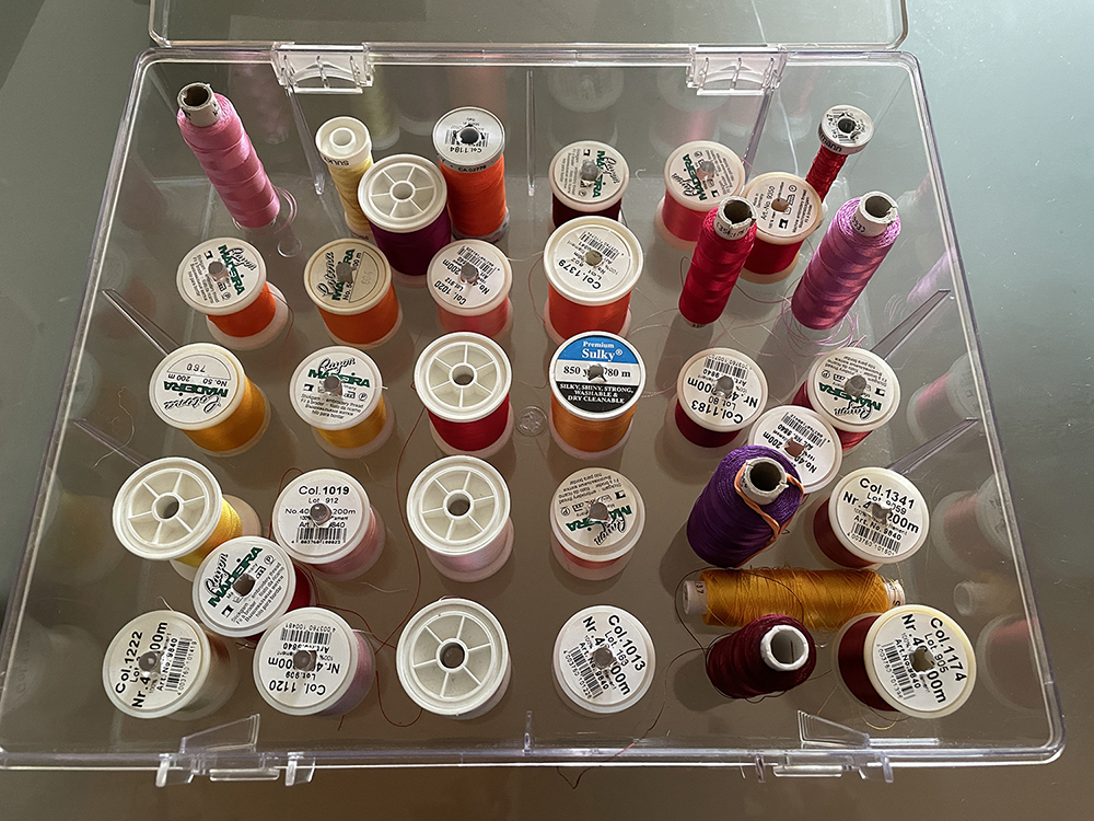 Ich möchte mich von meinem Stickmodul (lief bei mir mit der Bernina Artista 180) und Stickgarnen trennen. Preislich habe ich nicht wirklich eine Vorstellung - ich freue mich auf faire Angebote. Stickgarne bitte nur komplett (2 Boxen aus unterschiedlichen Perspektiven fotografiert).