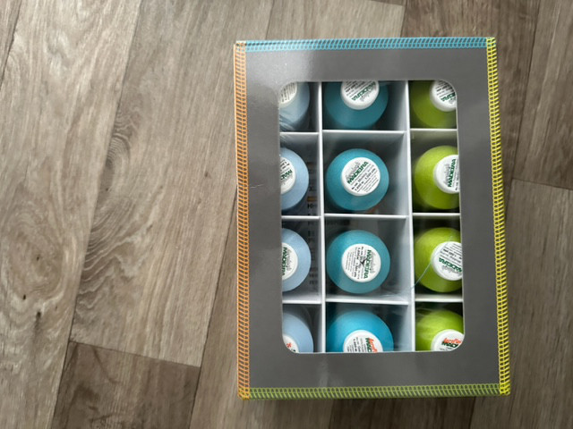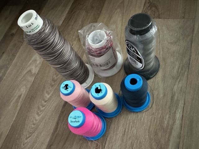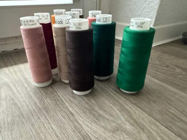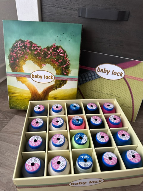 des Weiteren Overlockgarne, wie Trojalock, Madeira, und Spezialgarne. Ausserdem gibt es noch Jerseystoffe und Bündchen dazu, es kann also gleich gestartet werden.