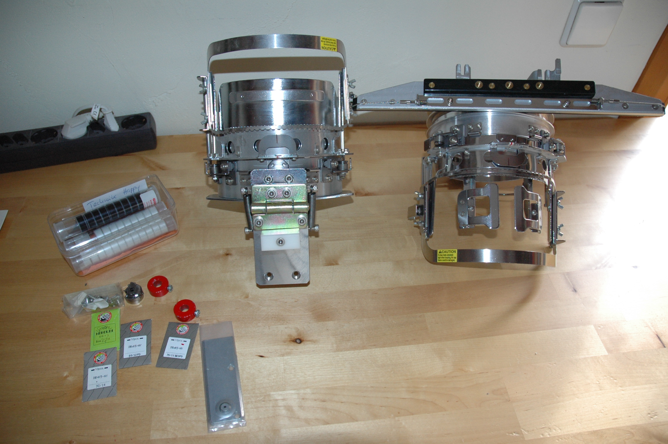 Die Stickmaschine hat einen Stickkopf mit 12 Nadeln! Die erleichtern das Sticken ungemein, da zuerst die Maschine mit Garn bestückt wird und dann die Farben automatisch wechselt und stickt.