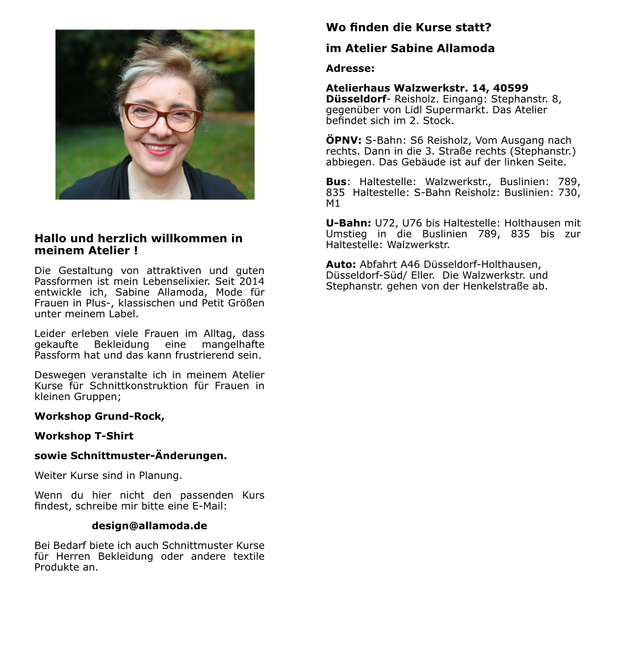 Anmeldung: Bitte melde dich per E-Mail an: design@allamoda.de