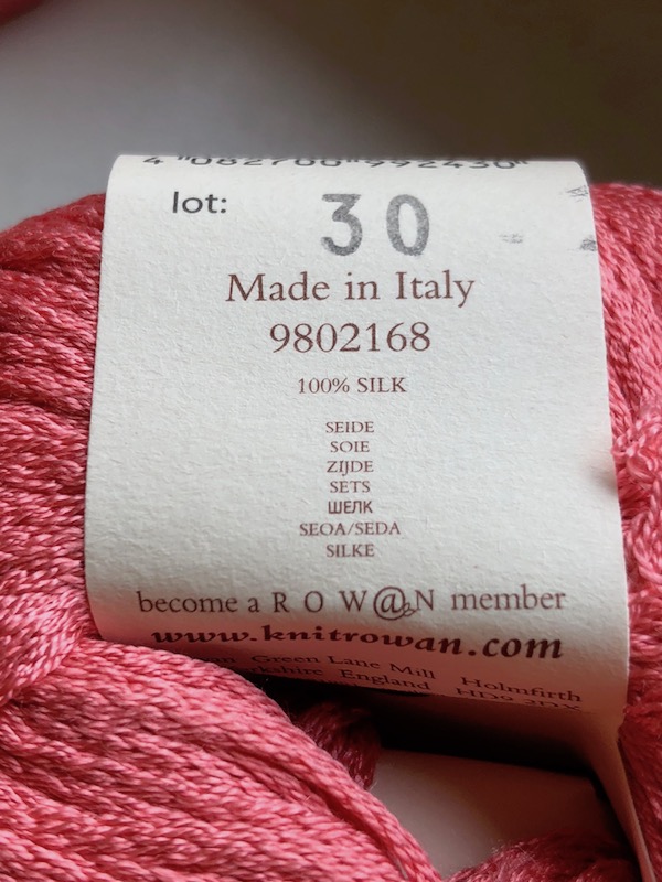 Es handelt sich um die ROWAN Truesilk, eine 100%ige Maulbeerseide - einfach wunderschön ! Es gibt sie meist nicht mehr im Handel.