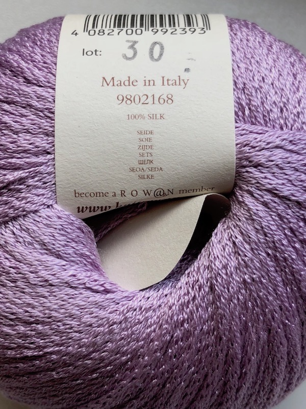 Es handelt sich um die ROWAN Truesilk, eine 100%ige Maulbeerseide - einfach wunderschön ! Es gibt sie meist nicht mehr im Handel.