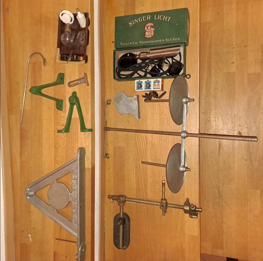 Typ ist wohl 67 - 52 S. Hersteller ist Adler, da auf der Oberseite ein Schild "Adler, Frankfurt Offenbach" angebracht ist. Auf der Rückseite fehlt ein Teil, ansonsten sollte sie komplett sein. Auf den Bildern seht ihr mehr. Abholer wäre gut, da das Ding ziemlich schwer ist. Es hat sich nun rausgestellt, daß diese Maschine hauptsächlich zum nähen von Schuhoberteilen konstruiert wurde und ermöglichte durch den Radtransport + Rollfuss sehr kleine Kurvennähte (z.B. für Schuhspitzen) herzustellen.
