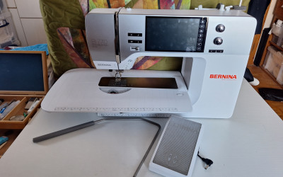Nachdem die neue Bernina 770 QE Pro Einzug gehalten hat, biete ich meine alte Bernina QE Plus an. Ich hab sie 2023 als Vorführmodell gekauft und war immer sehr zufrieden mit ihr. Allerdings hat die Neue einen eingebauten Laser, eine Wohltat für ältere Augen.