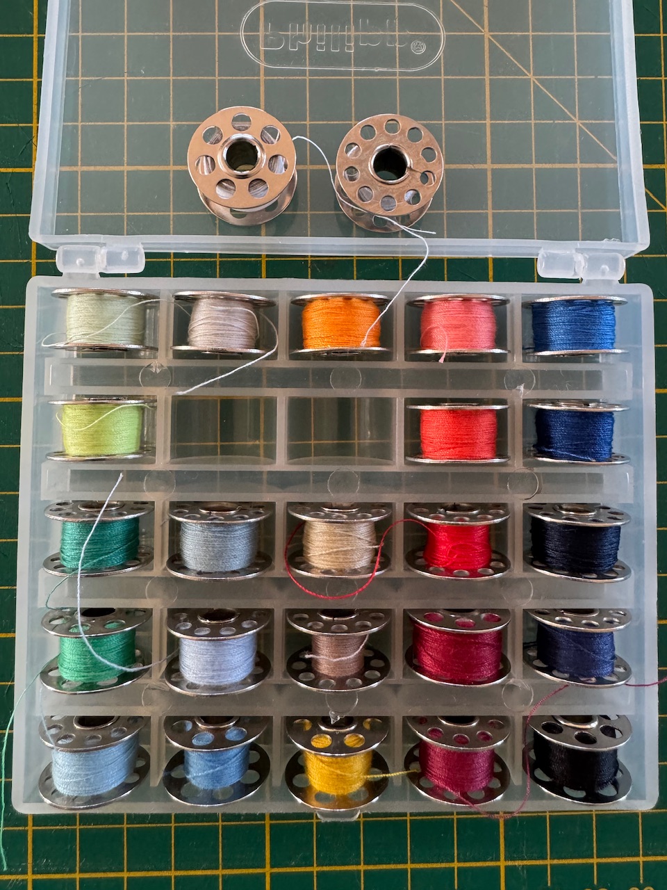Vor Jahren einmal für meinen Nähkurs angeschafft, die Bernina Maschinen im Kursraum stellten. Ich weiß nicht mehr, ob das alles Original-Bernina-Teile sind. Manche Spulen haben große, andere kleinere, runde Löcher im Metall. Aber sie liefen alle einwandfrei in der Bernina Virtuosa und Aurora.