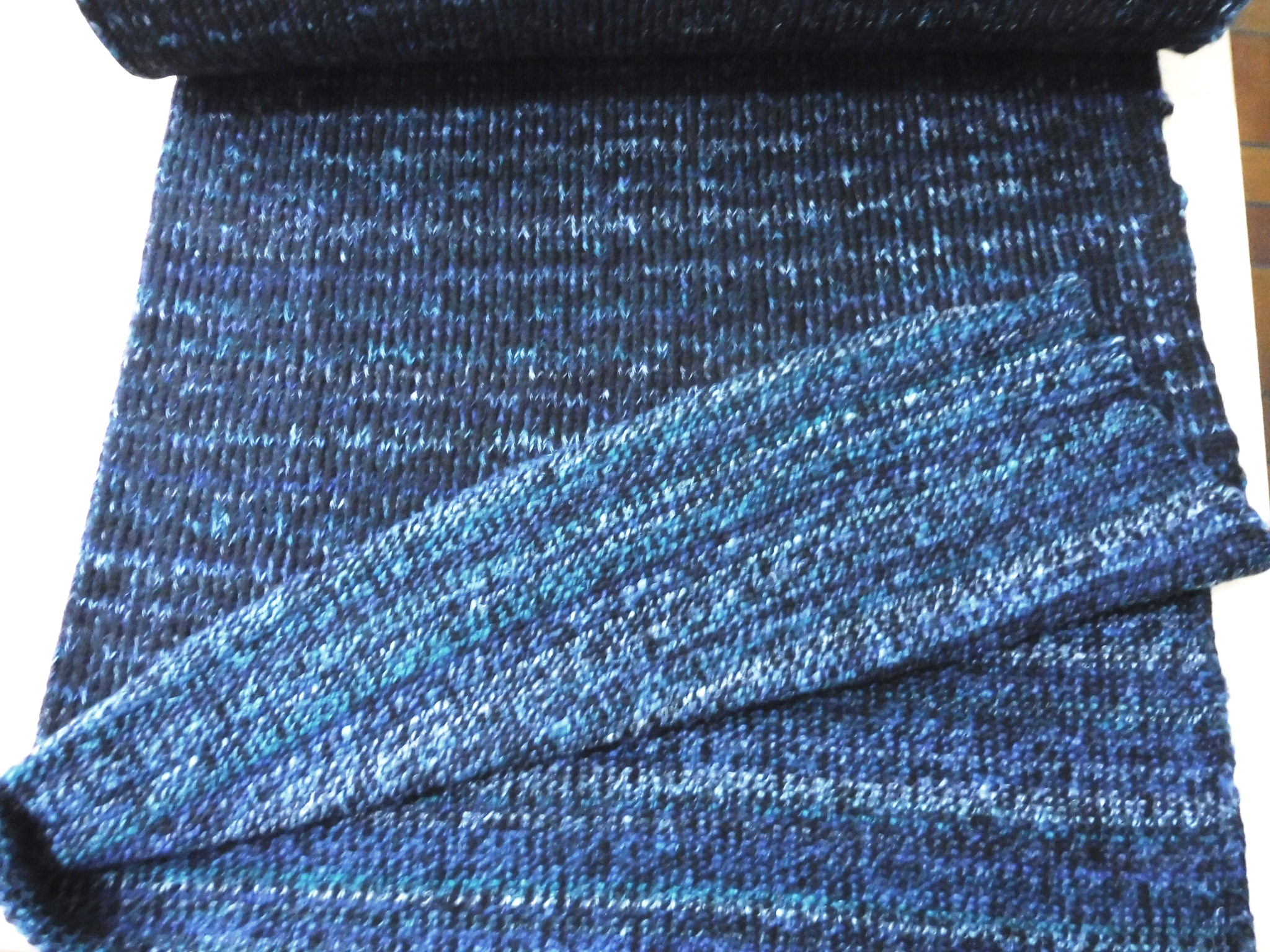 Hilco Blau-grün melierter Strick, 45 % Schurwolle, 30 % Polyester, 25 % Polyacryl, ca. 140 cm breit, 3,80 m – Meterpreis 17,- € (vorher 34,- / m)