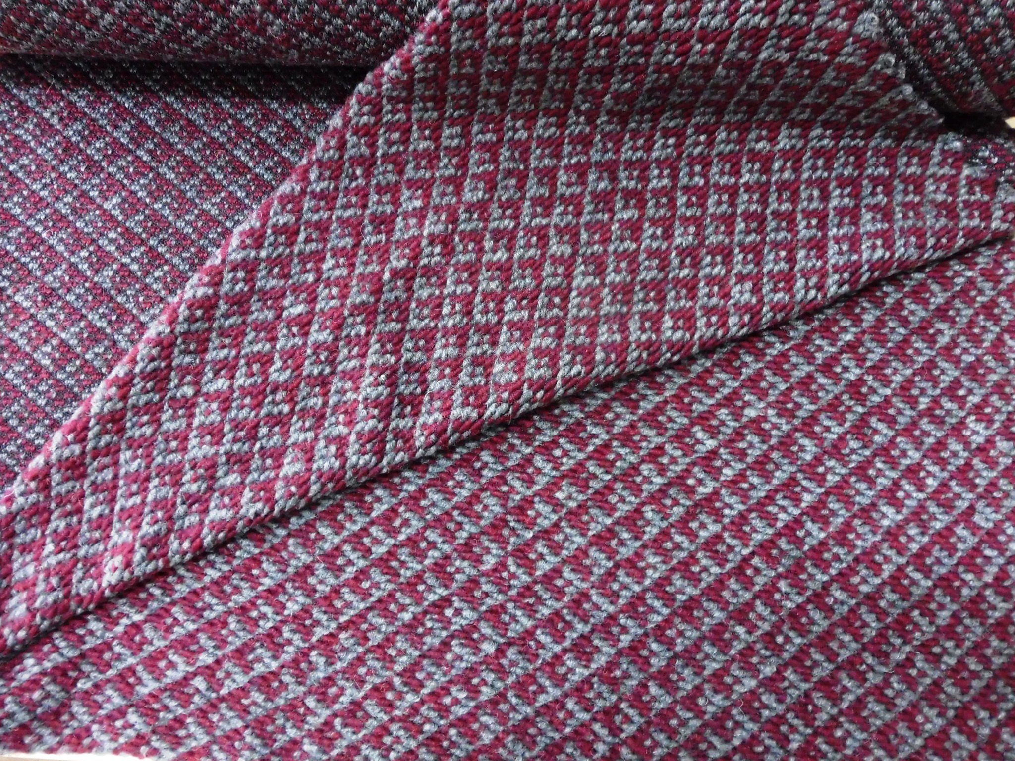 Jaquardstrick grau-weinrot, 70% Schurwolle, 30 % Polyacryl, ca. 150 cm breit, 4,5 m, Meterpreis 14,- € (vorher 29,- €/m)