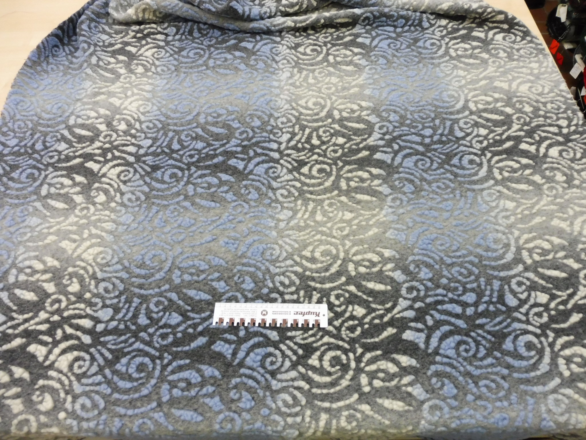 Walkstrick Rosen/Farbverlauf grau-wollweiß-hellblau, 80 % Schurwolle, 20 % Baumwolle, ca. 140 cm breit, ca. 4,6 m – Meterpreis 22,- € (vorher 44,-€ / m)