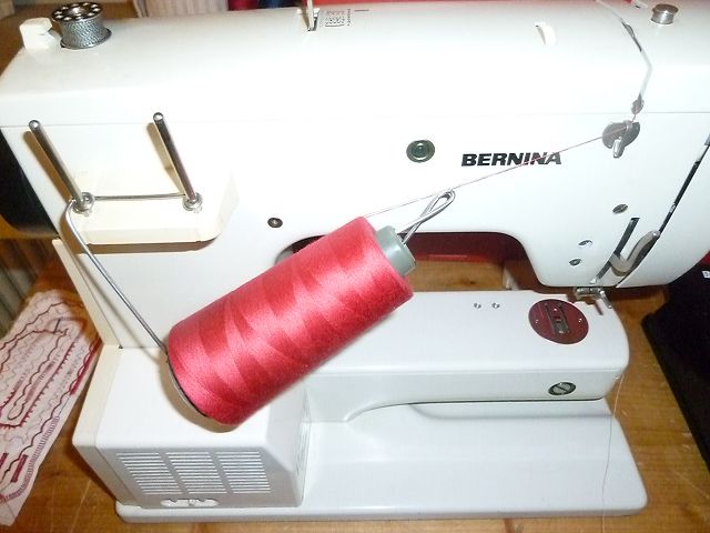 mit einem –auf die Garnrollenstifte aufschiebbaren- speziellen Konenhalter(siehe Foto # 12),