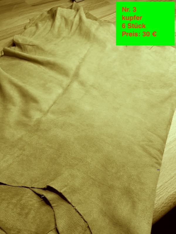 ich löse auch so allmählich meine Stoffsammlung auf und biete hier Echtleder (vermutlich Ziegenleder) zum Verkauf an.