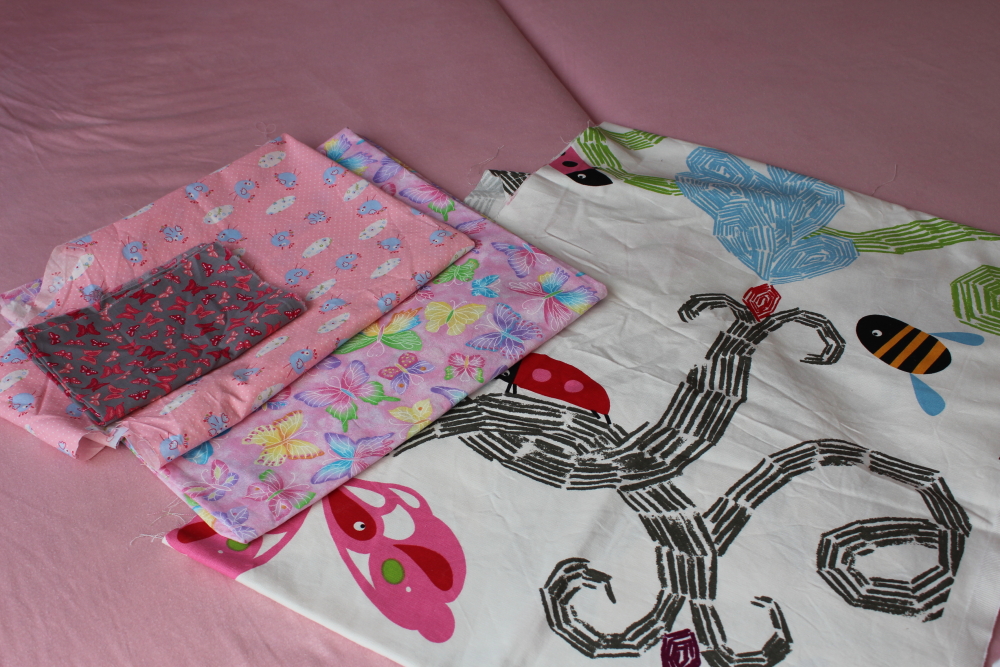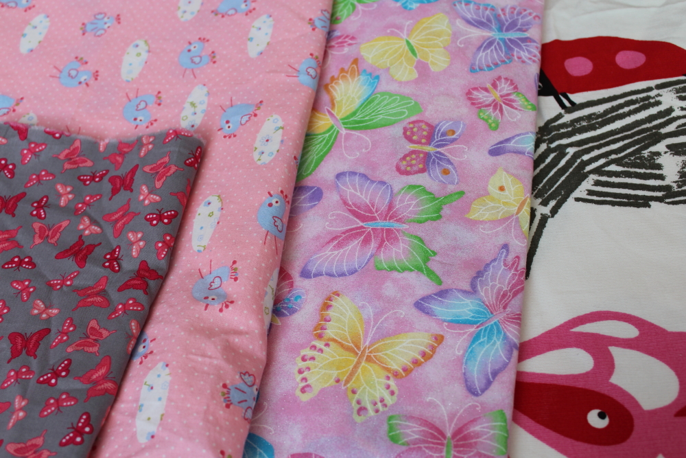 - Schmetterlingsstoff, rosa-bunt, Baumwolle, mit viel Glitzer, aus den USA, 144 x 110 cm + Anhängsel