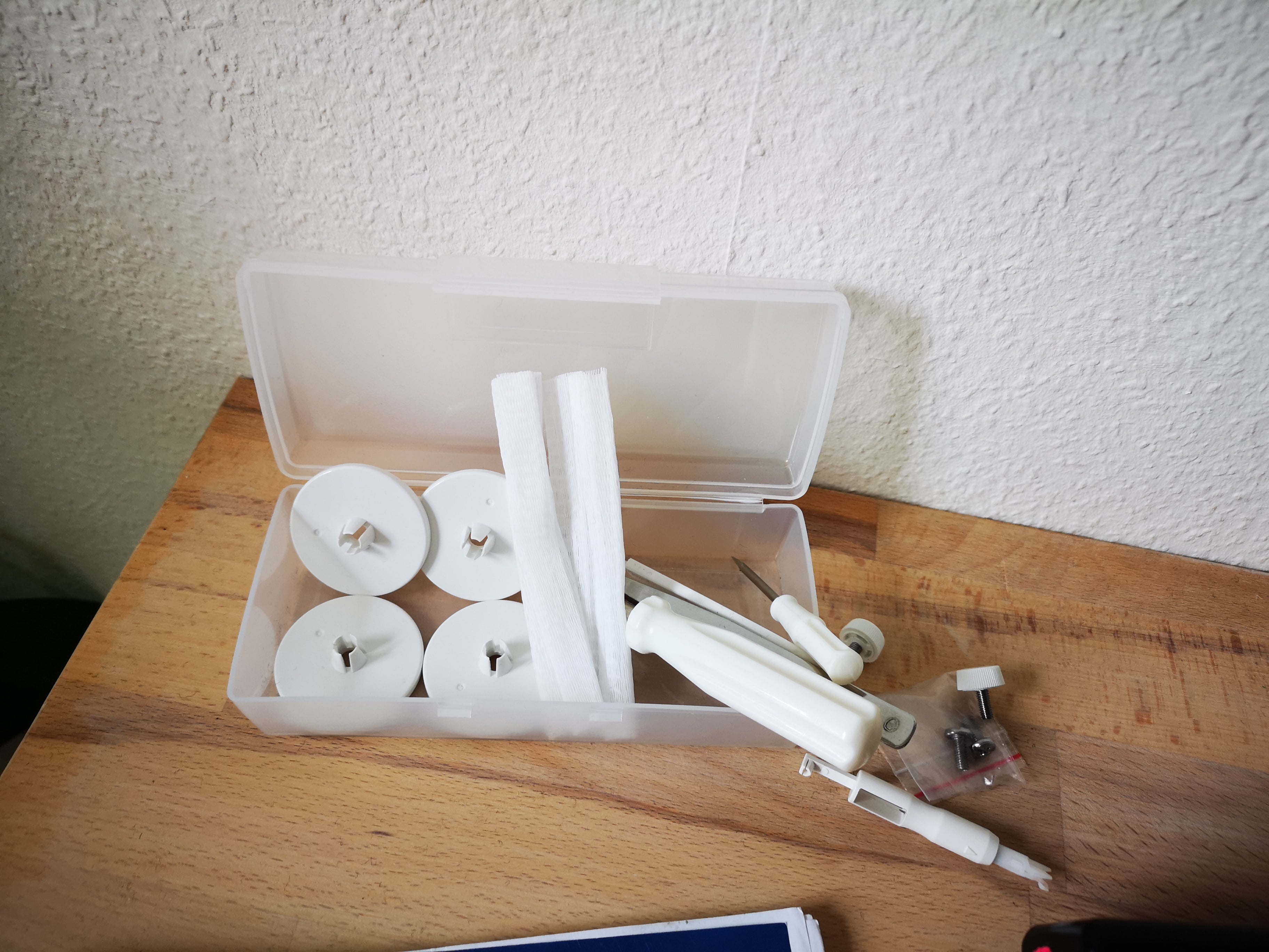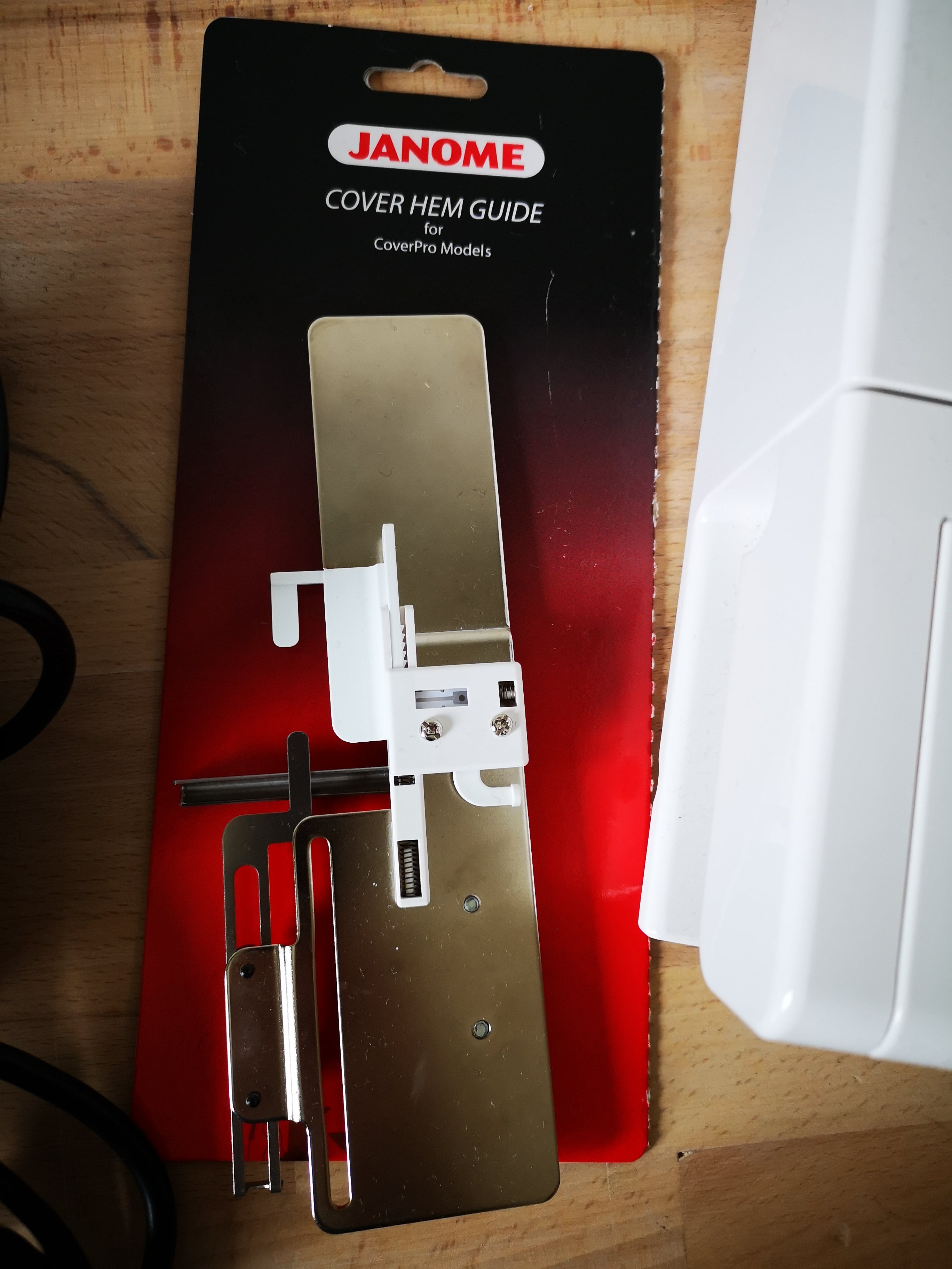 Zusätzlich ist noch der kurze Nähfuss sowie die breite Saumführung dabei.