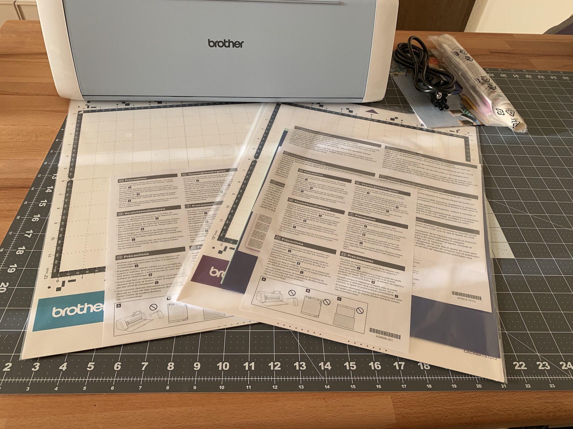 Die Rückseite hat noch die Original- Sicherungsstreifen dran. Messer und Matten alles noch in Originalfolien verpackt und ungeöffnet.