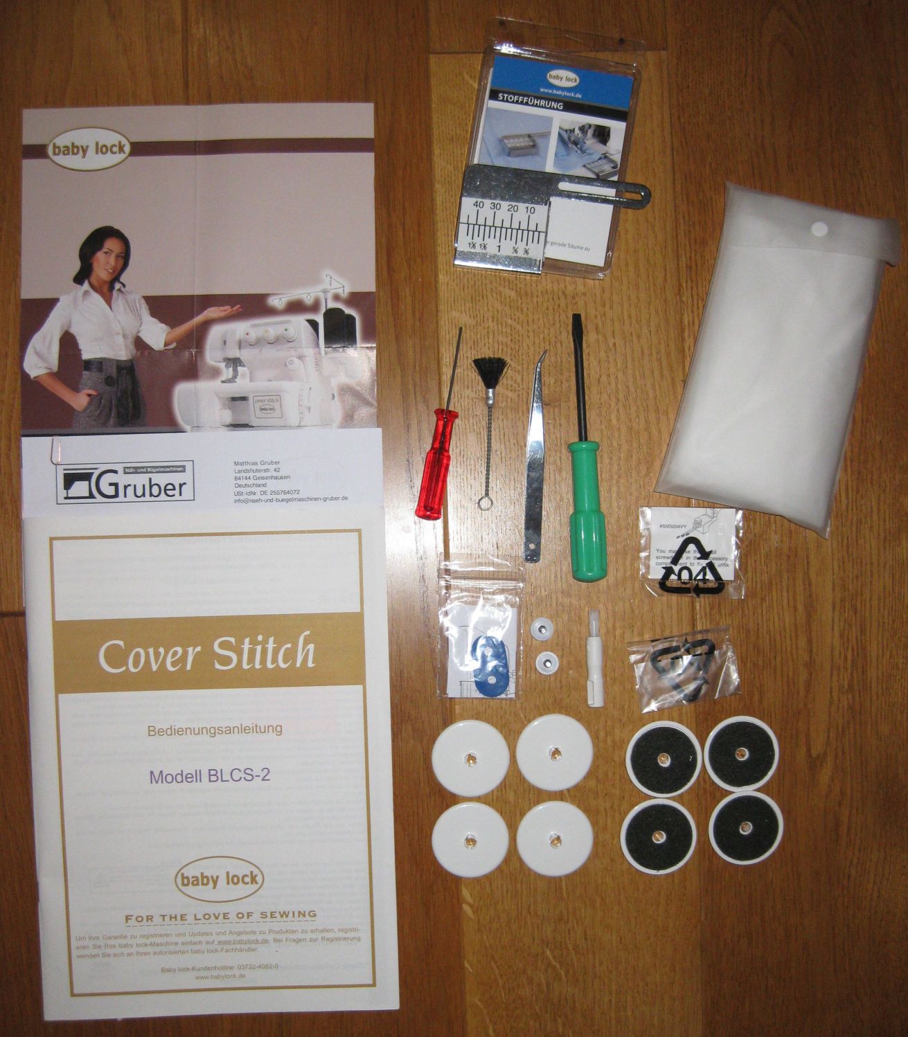 - Original Stoffführung B0420S01A -> Kann mit dem Adapter (blau) und den Apparateschrauben montiert werden; NP ca. 25€