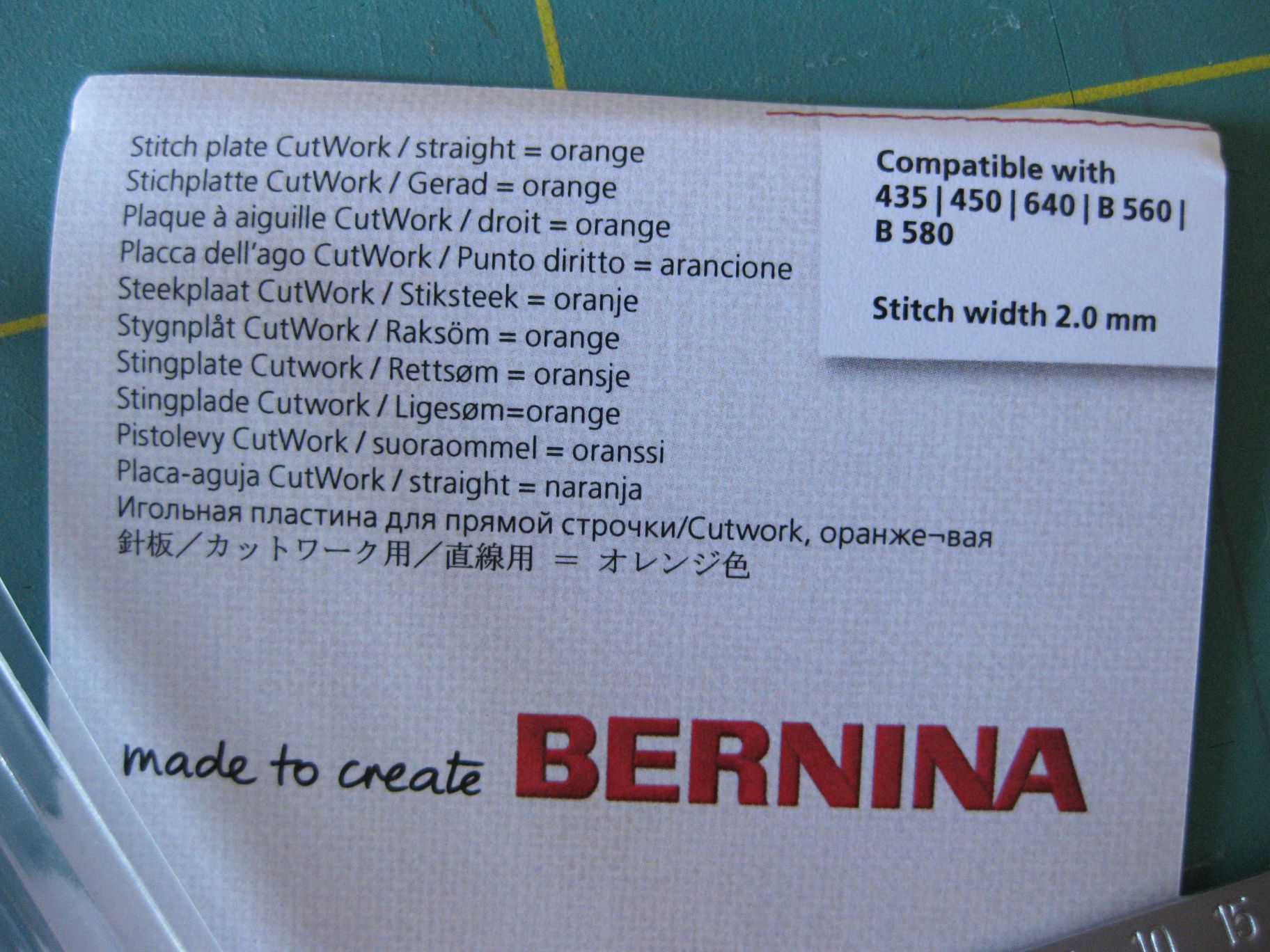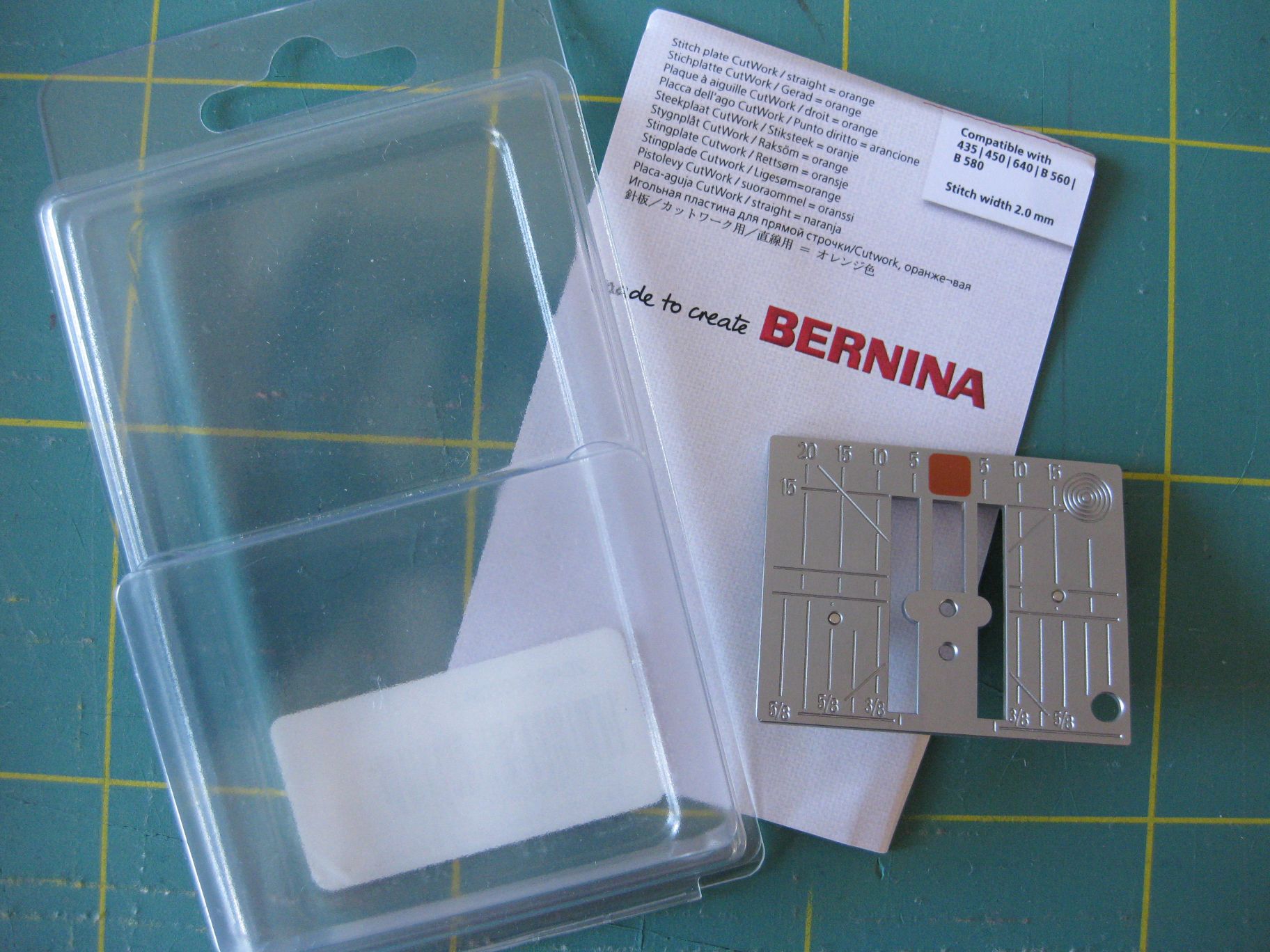 Ich biete hier eine kaum benutzte Stichplatte Cutwork/ gerade = orange für folgende BERNINA Nähmaschinen an: 435/450/640/B560/ B580. Stichbreite 2mm