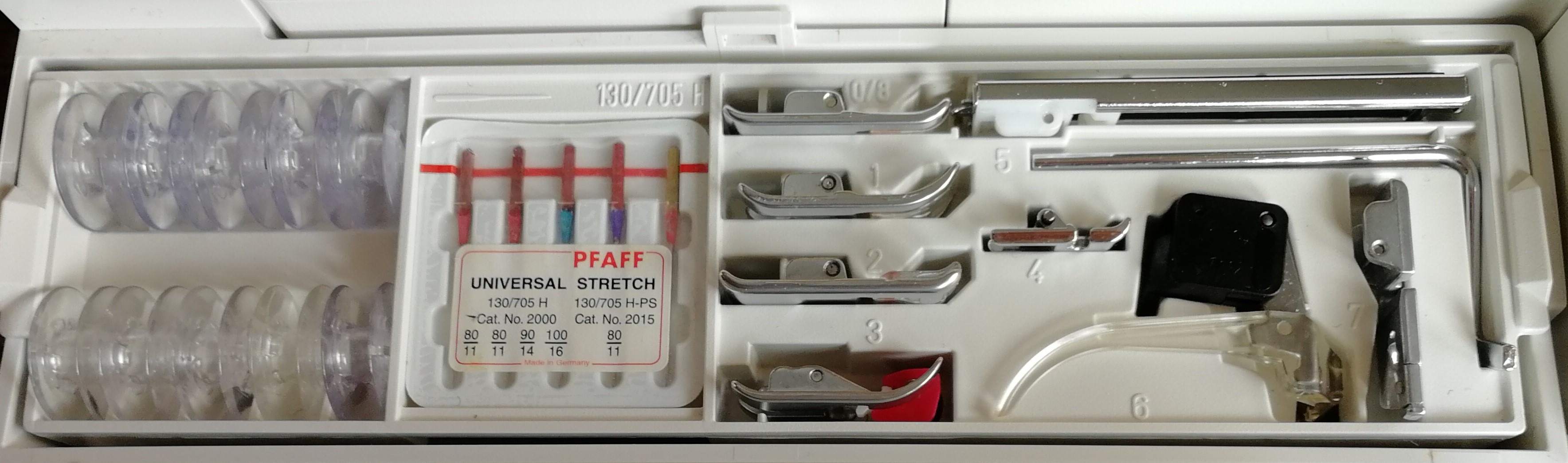 Ich möchte meine Pfaff 7570 verkaufen. Die Maschine ist in einem guten Zustand, wie Ihr auf den Fotos sehen könnt. Sie ist komplett mit allem Originalzubehör. Nur der Fußanlasser ist vor ein paar Jahren durch ein Originalersatzteil ersetzt worden. An diesem gab es vor einiger Zeit einen Kabelbruch, so dass ich den Stecker ersetzen lassen musste.