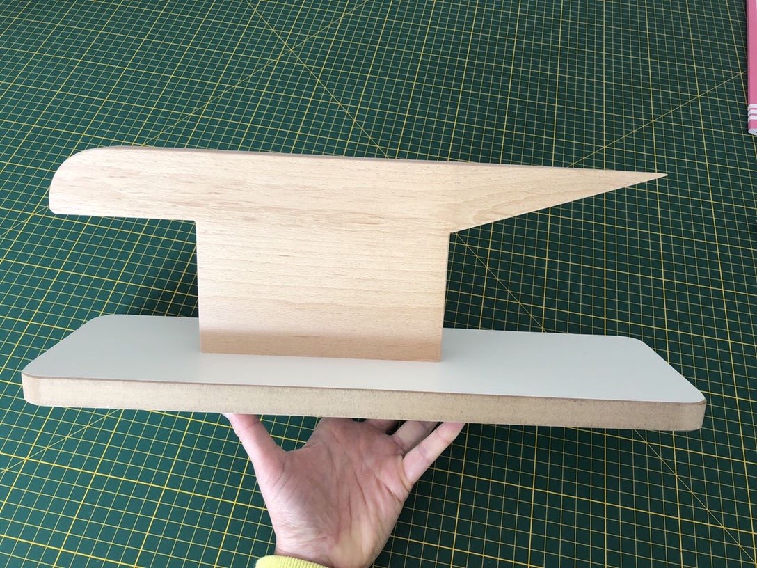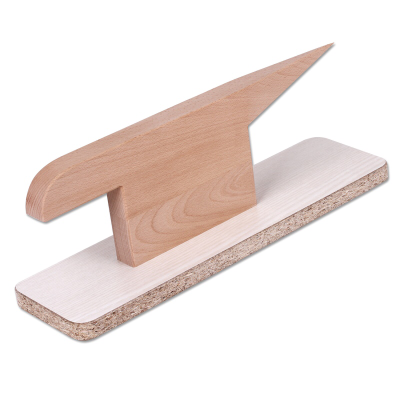 Der Helfer aus Hartholz wird auch Bügelamboss oder Bügelholz genannt. Er erleichtert besonders beim Kragen das Ausbügeln von Kanten und Nähten: Dank der schmalen Auflagefläche wird nur die Naht mit dem Eisen berührt. Das spitze Ende des Holzes dient dazu, die Nähte des Kragens bis ganz nach vorn in die Spitze auszubügeln. Die abgerundete Seite hilft bei rund Genähtem, z. B. am Kragensteg.