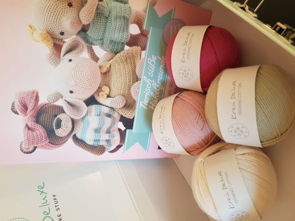 Ich verkaufe 4 neue Knäuel Organic Cotton von Kreadeluxe in abgestimmten Farben für Projekte aus dem Buch "Tierisch süße Häkelfreunde". Das Buch verkaufe ich ebenfalls. Alles ist wie neu. Es war ein Geschenk, aber ich bin eher eine Strickerin, als eine Häklerin, daher werde ich es nicht verwenden.