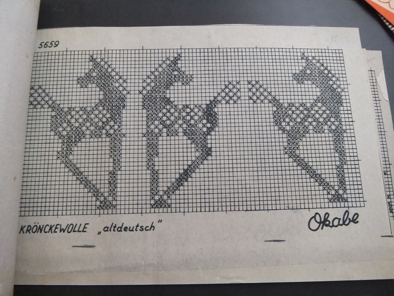 Von meiner Mutter habe ich diesen Ordner mit alten Anleitungen. Sie sind alle aus der Zeit um 1940 - 1955.