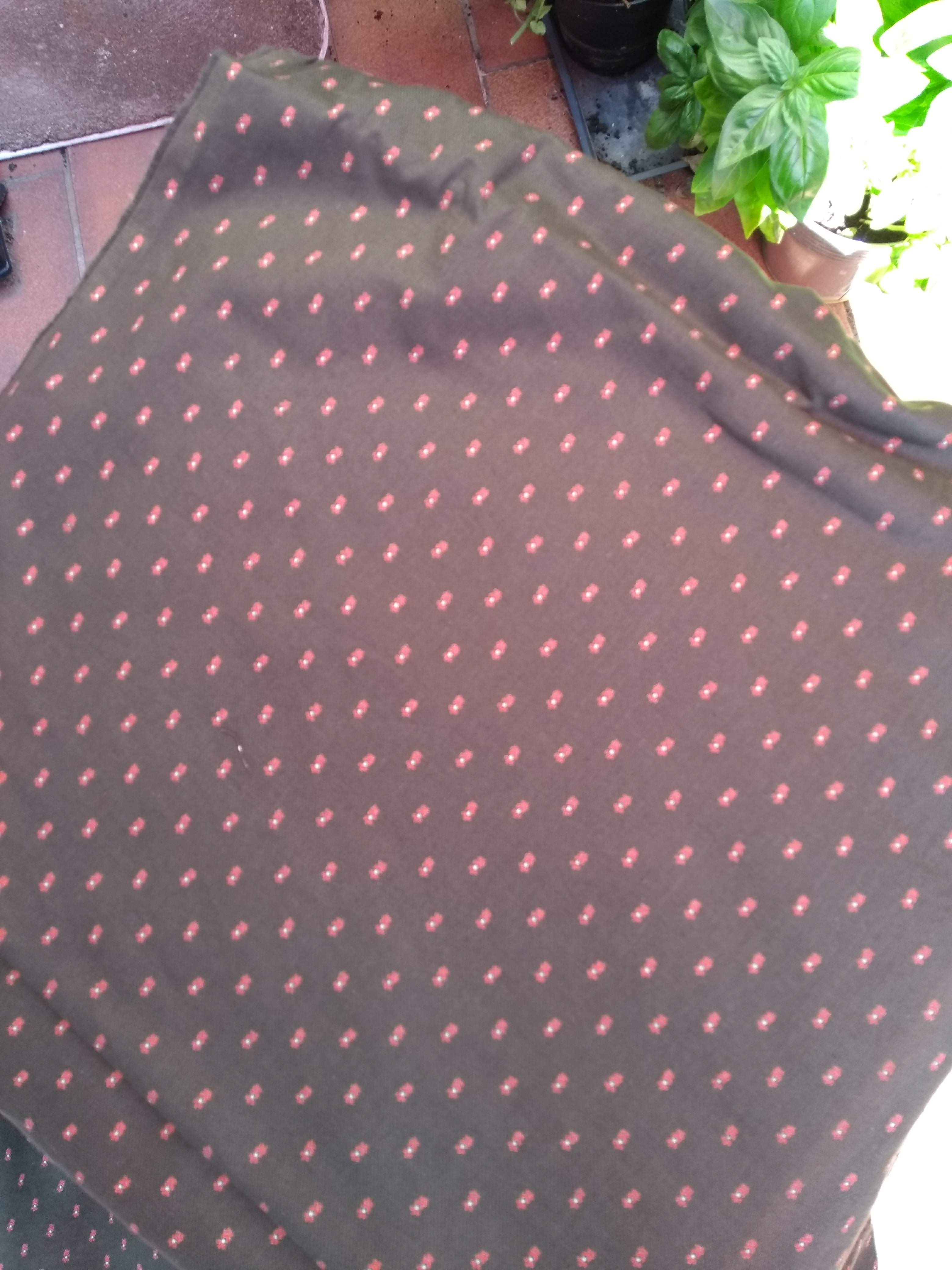 Ich möchte euch hier einen Trachtenstoff in dunkel olivgrün mit kleinen roten Blüten aus dem ehemaligen österreichischen Traditionshaus Franz Rhomberg anbieten.